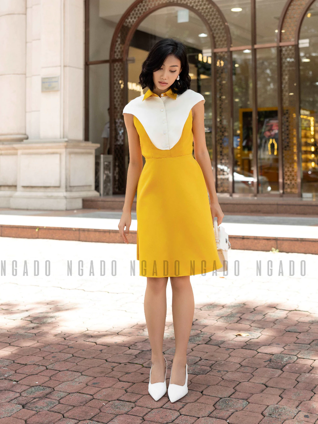 ✨Đầm vàng tay con NGADO , đầm ngắn dự tiệc , đầm dạo phố