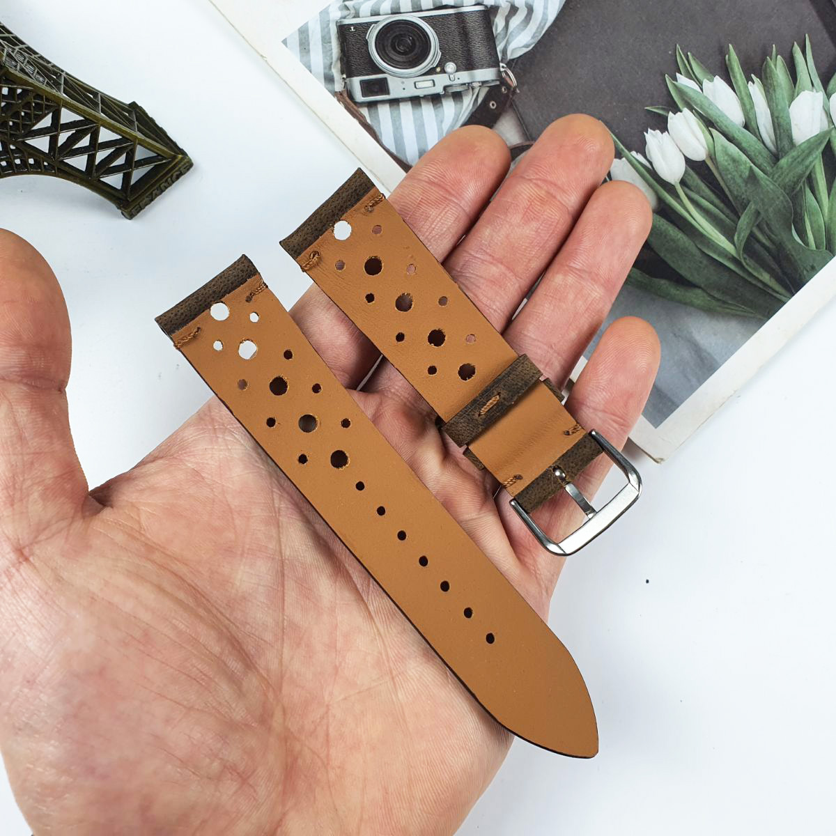 Dây Đồng Hồ Da Đà Điểu Huy Hoàng HT8430 - Xanh Rêu với quy trình sản xuất tại xưởng bởi thợ thủ công tay nghề cao, dây đồng hồ thiết kế hợp thời trang,