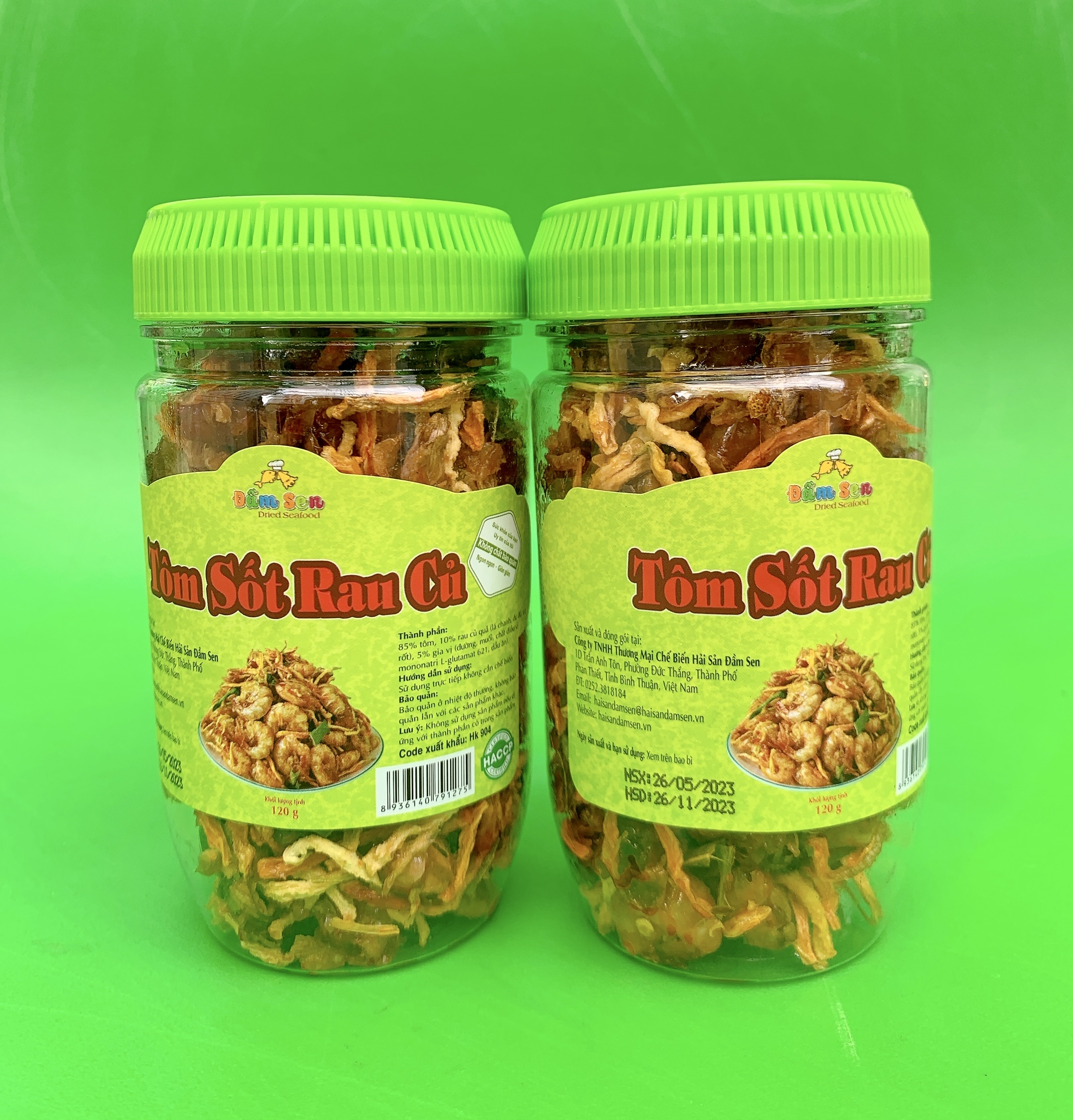 Thành phần: 85% tôm, 10% rau củ quả (lá chanh, đu đủ, cà rốt), 5% gia vị (đường, muối, chất điều vị mononatri L-glutamat 621, dầu ăn) Hạn sử dụng: 9 tháng kể từ ngày