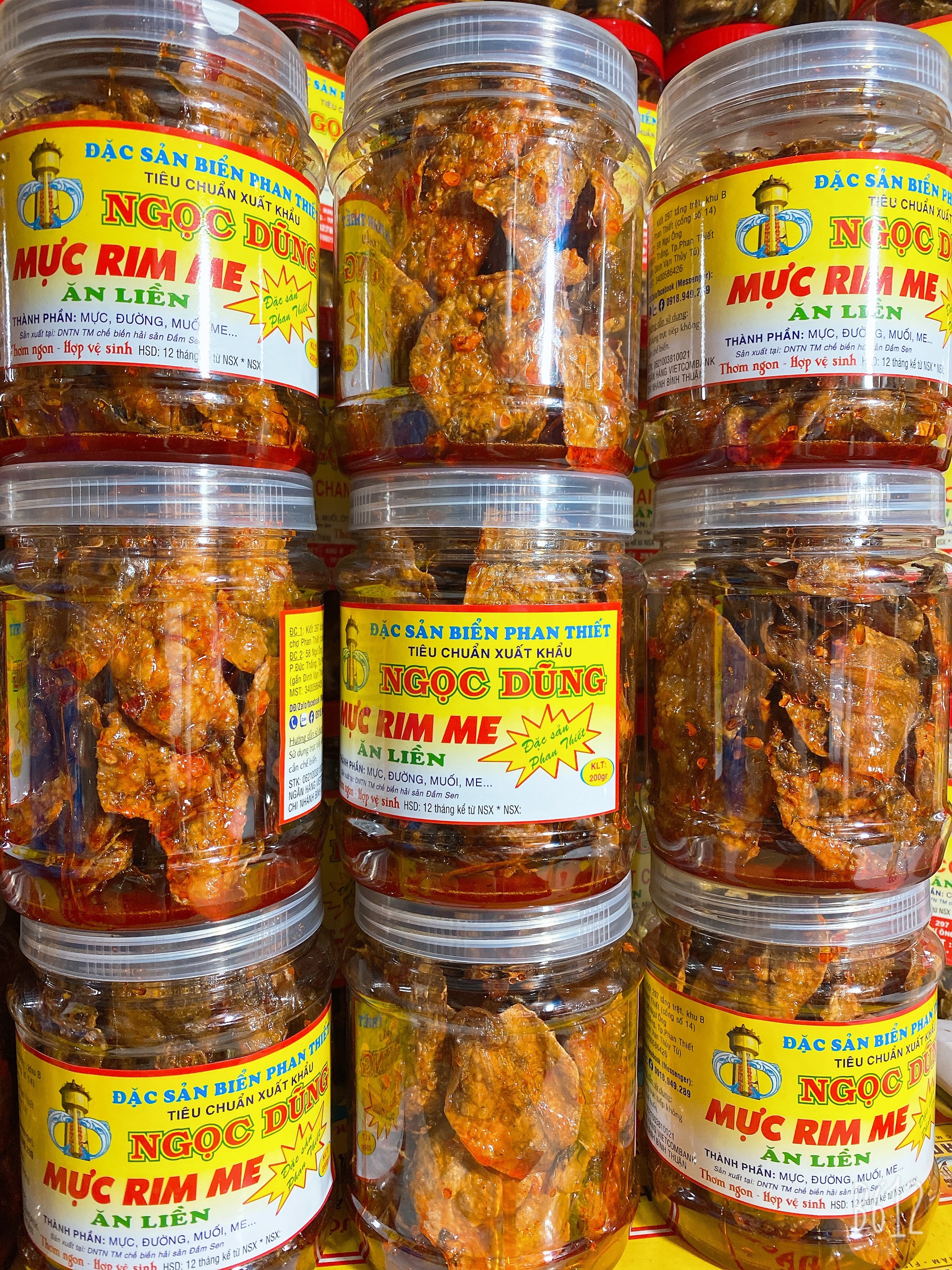Mực rim me ( ăn liền ) hộp 250 gram được chế biến từ mực ống hay mực lá còn tươi xanh tại Cảng cá Phan Thiết tỉnh Bình Thuận là món ăn ngon của Shop Đặc Sản Biển Phan Thiết NGỌC DŨNG. Từ lâu khô mực là món ăn yêu thích của rất nhiều người bởi vị ngọt ngon, đậm đà, mặm mòi đặc trưng riêng của nước biển miền trung quê hương tôi. Đây là món thực phẩm khô rim me rất dể bảo quản trong tủ lạnh nên khách hàng đi du lịch Phan Thiết - Mũi Né thường xuyên mua làm quà biếu cho người thân vì vậy bạn nên mua dự trữ trong tủ lạnh mỗi khi rảnh rổi ăn vật nhâm nhi cả ngày hay khách đến nhà chơi đem ra ăn liền rất ngon và tuyệt vời giới thiệu cho nhiều người cùng mua liên hệ Đặc Sản Biển Phan Thiết NGỌC DŨNG. Sản phẩm mực rim me ngày nào cũng sản xuất nên lúc nào cũng có hàng đảm bảo chất lượng thơm ngon và hợp vệ sinh an toàn thực phẩm. Sức khỏe của bạn- uy tín của tôi. Xuất xứ tại Cảng cá Phan Thiết tỉnh Bình Thuận. Hạn sử dụng 6 tháng kể từ ngày đặt hàng. SHOP CAM KẾT: Đảm bảo sản phẩm khô chất lượng 100% giống mô tả đạt chất lượng an toàn vệ sinh thực phẩm theo tiêu chuẩn Bộ Y Tế. Hình ảnh sản phẩm là hình thật do shop tự chụp màu sắc tự nhiên. Sản phẩm có sẳn giao hàng ngay khi nhận được đơn đặt hàng của quý khách. Giao hàng trên toàn quốc.