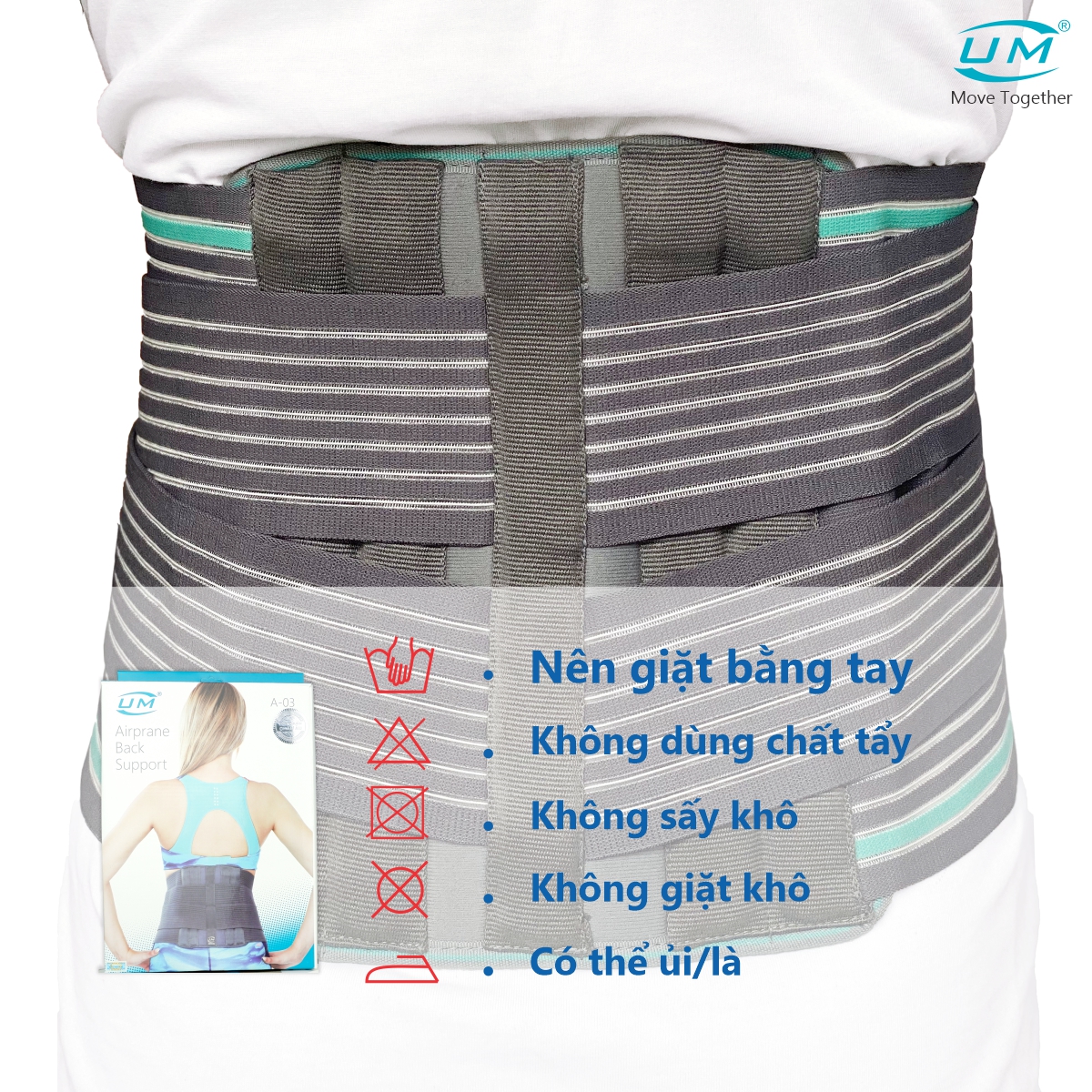 Đai lưng chỉnh hình cột sống UM (A03) có thiết kế hình dạng giải phẫu kèm thanh nẹp cao cấp, đảm bảo tư thế hoàn hảo và bất động hiệu quả. CHỈ ĐỊNH - Đau