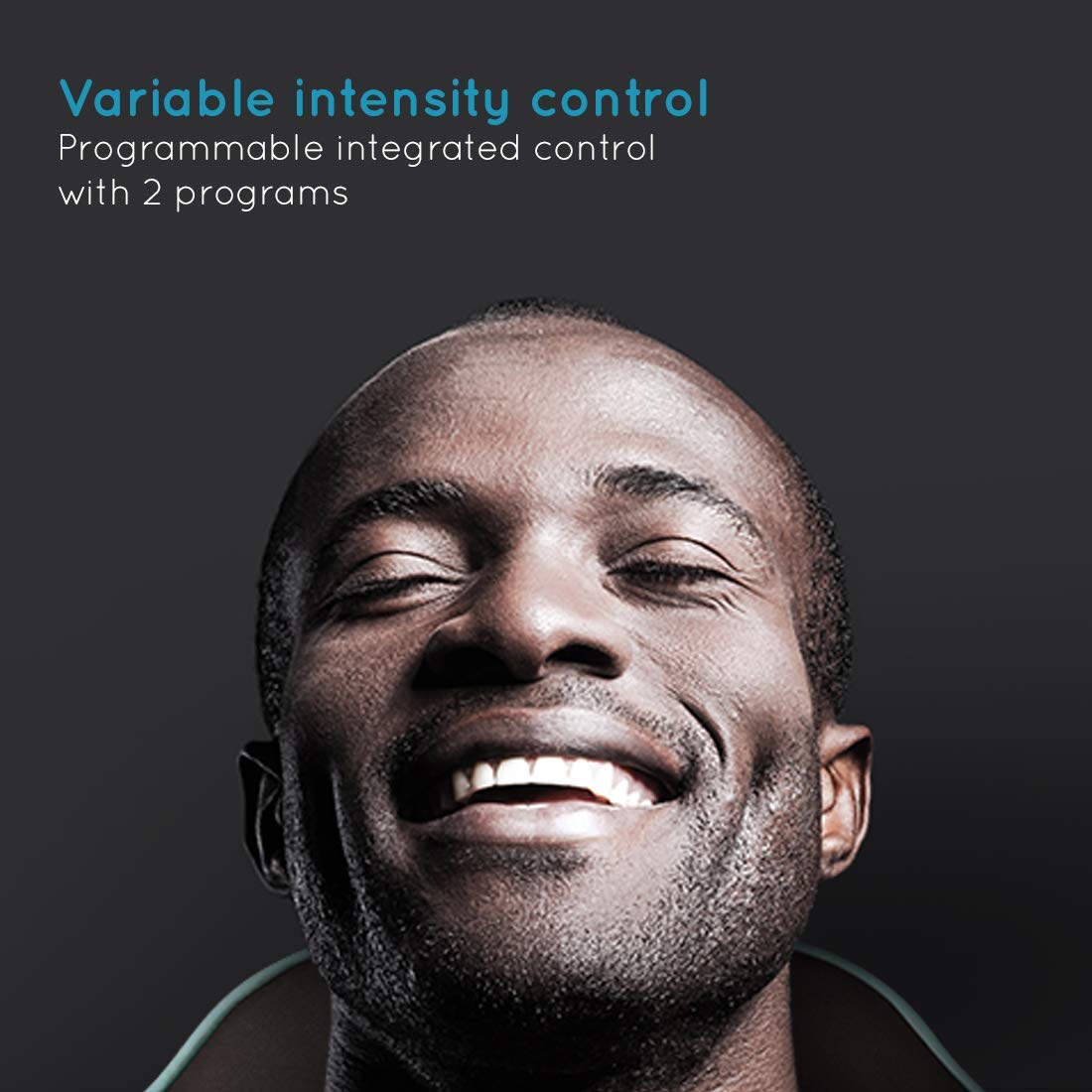 Được thiết kế quai cầm Flex, Đai massage vừa khít với các đường viền trên cổ của bạn. Hai tay cầm của máy để bạn kéo và điều chỉnh đai massage dựa vào cổ giúp bạn tăng cường độ massage nhẹ nhàng hoặc mạnh mẽ .