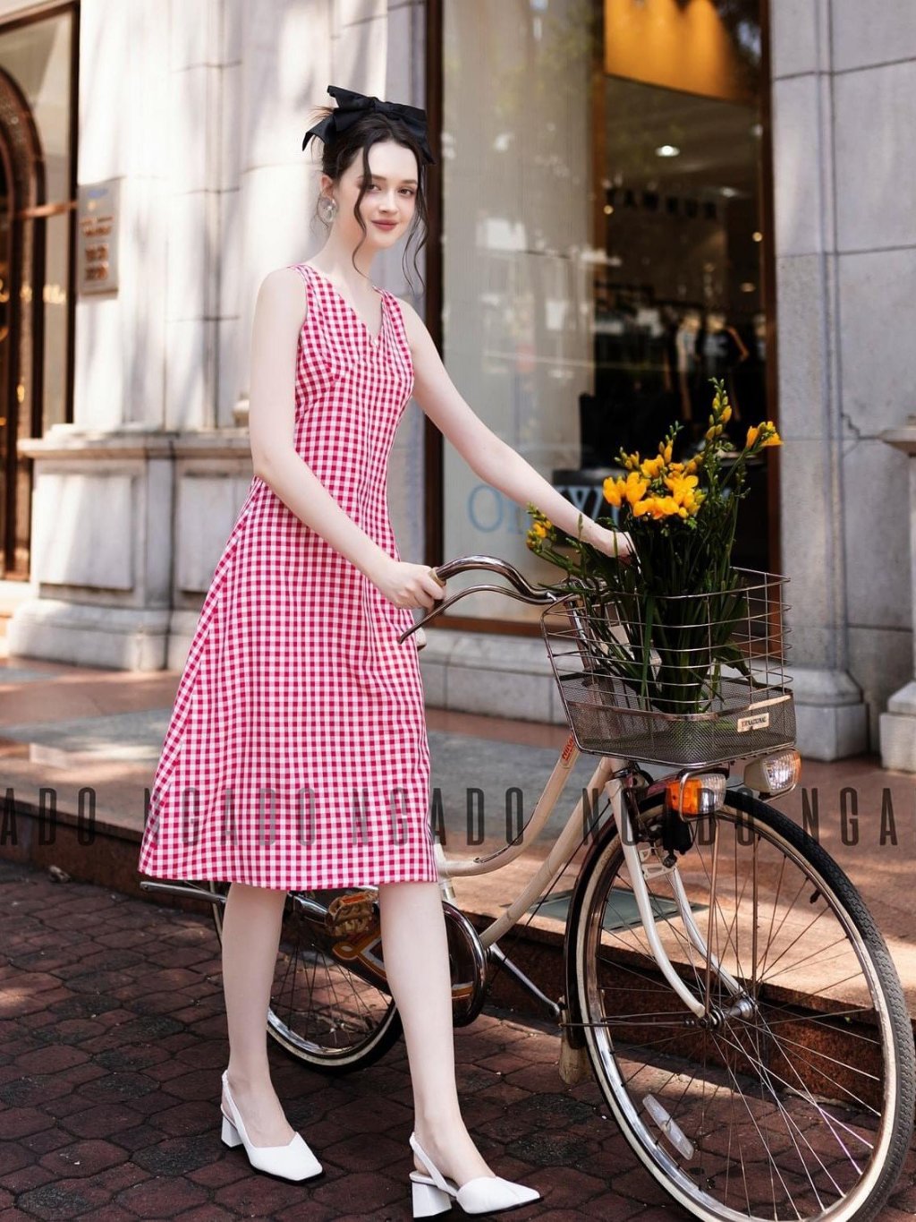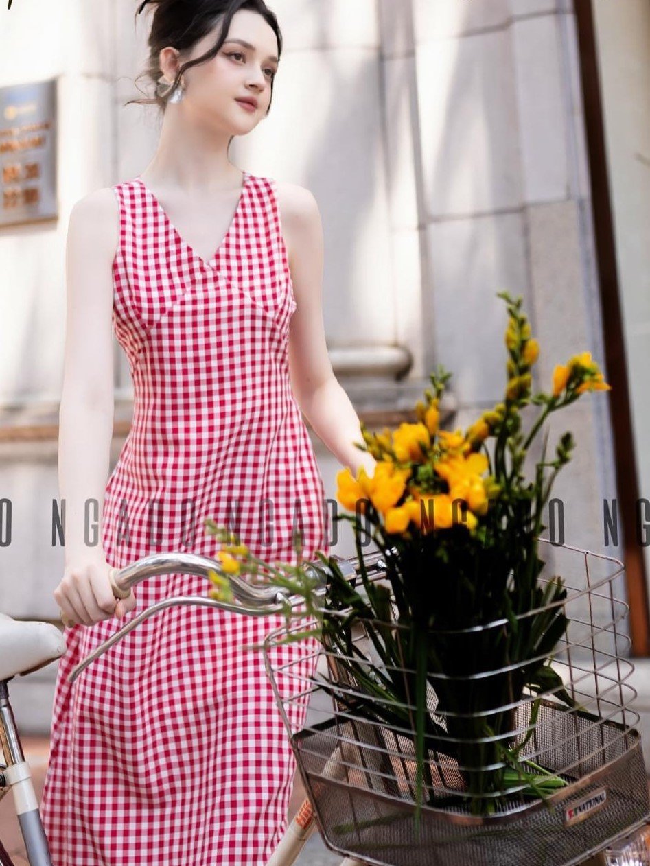 ✨Đầm caro đỏ cổ tim NGADO , đầm nữ , Đầm vintage , Đầm mùa hè , Đầm dạo phố , Đầm xinh , Đầm thiết kế