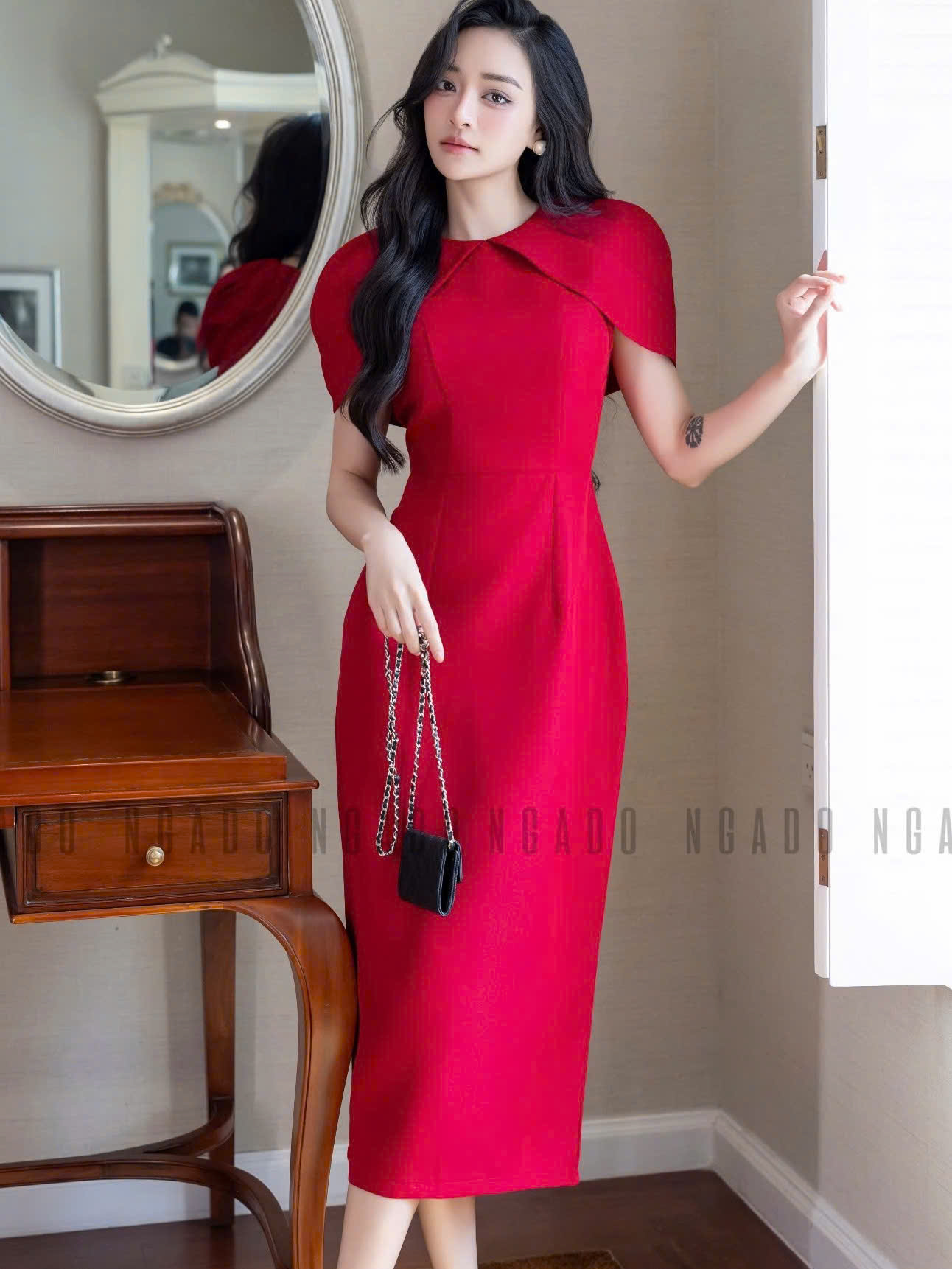 ✨Đầm đỏ cổ tròn NGADO , đầm dự diệc , đầm công sở