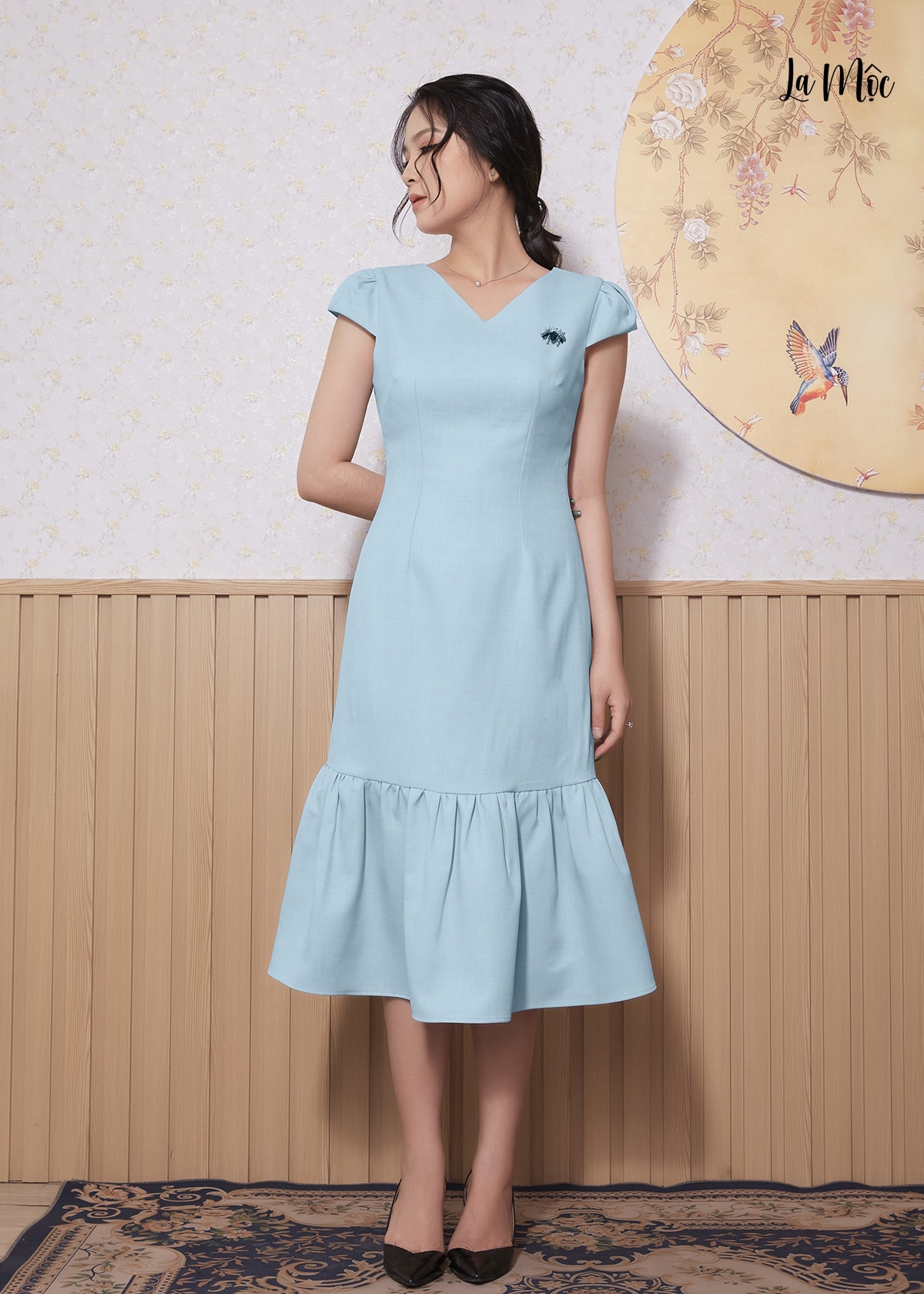 Đầm nữ cổ tim, đuôi cá, tay ngắn, chất liệu lụa hàn quốc, màu xanh nhạt 1. Thông chi tiết sản phẩm Mã sản phẩm: LM012226 Chất liệu: lụa hàn quốc Size: S, M, L