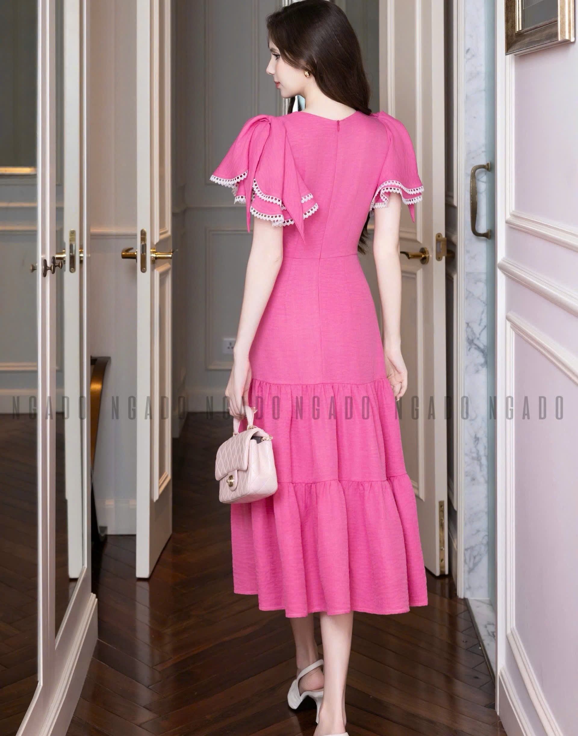 ✨Đầm hồng sen phối ren NGADO , đầm dài , đầm Nữ , đầm công sở , dự tiệc