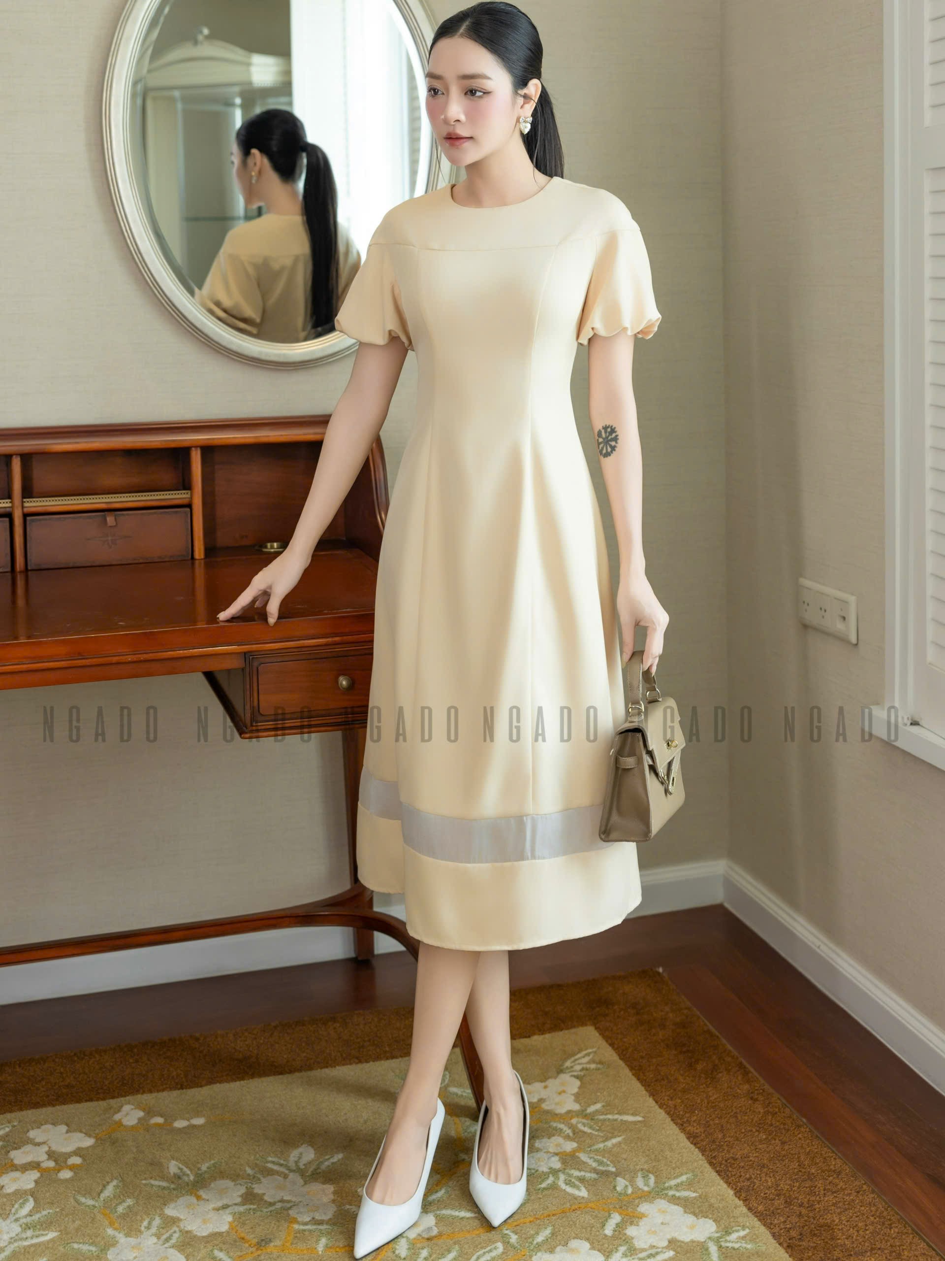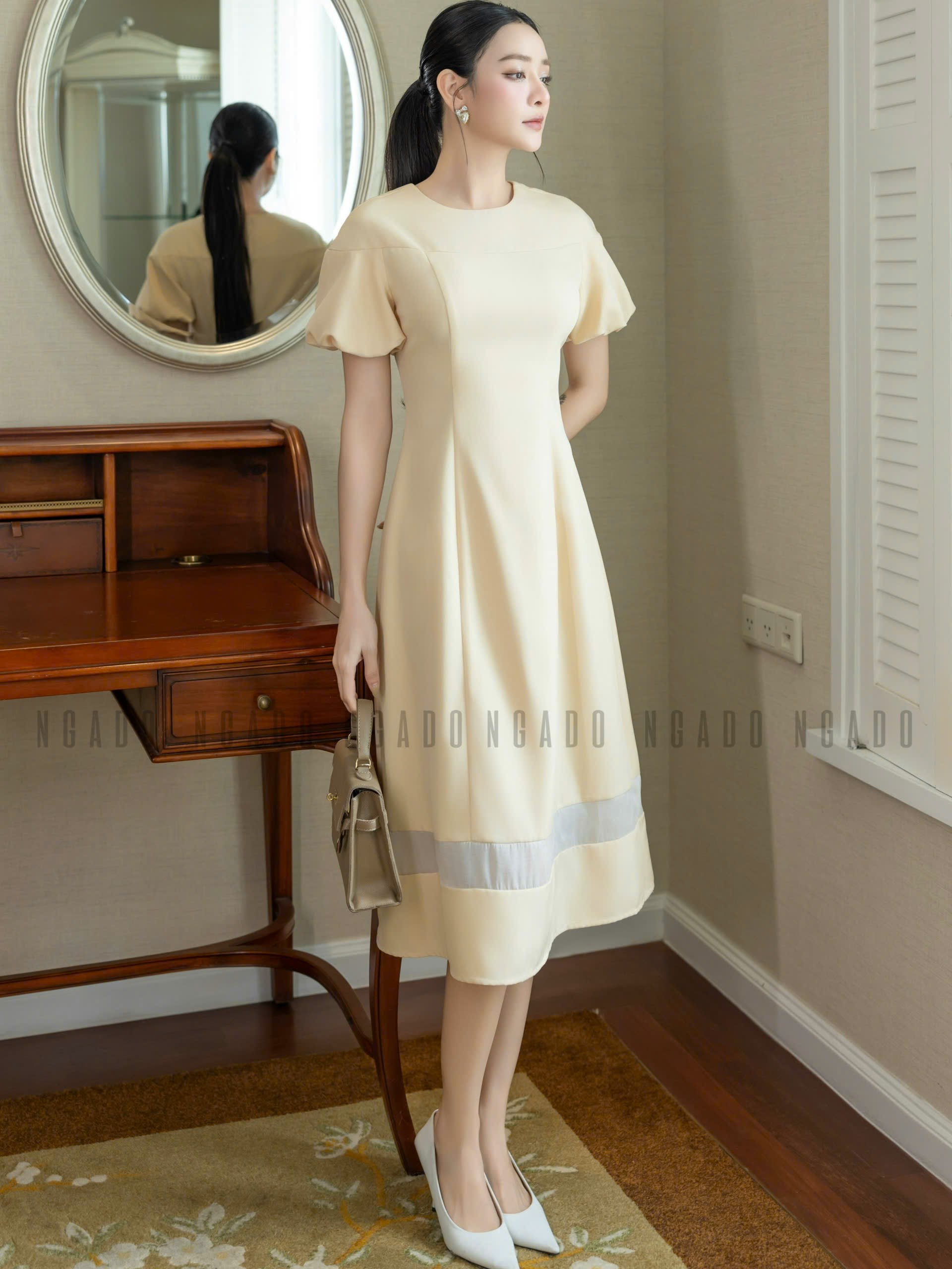 ✨Đầm kem dài cổ tròn NGADO , đầm dài , đầm cổ tròn