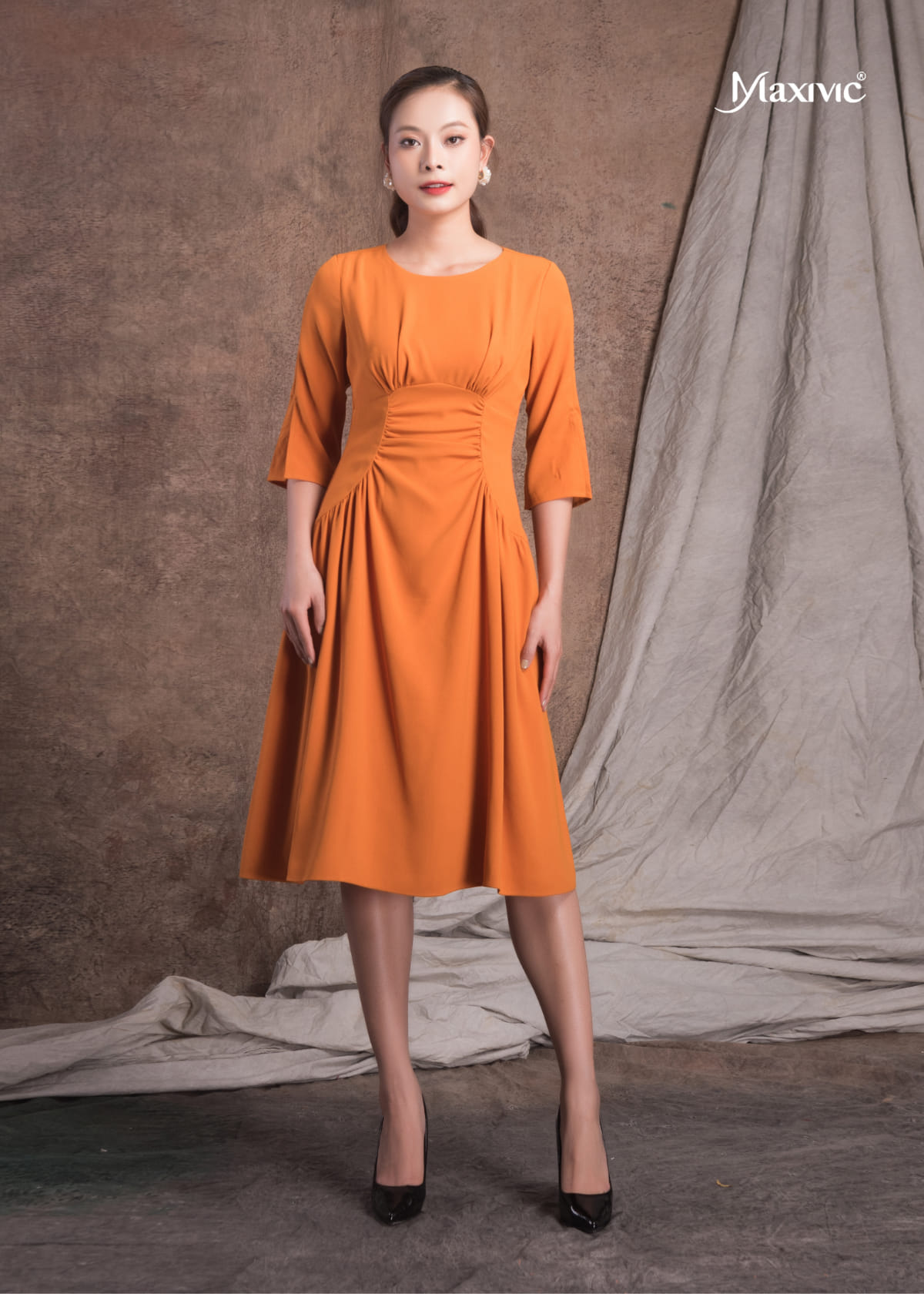 ĐẦM LỤA CAM, CÁCH ĐIỆU EO, MAXIVIC #maxivicboutique #maxivic #fashion #thanhlich #côngsở #đầmtiệc