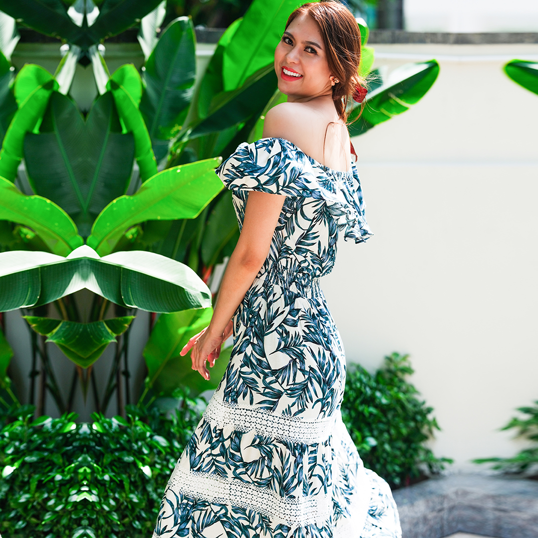 Đầm Maxi Trễ Vai Hoạ Tiết - bản tình ca giao mùa
