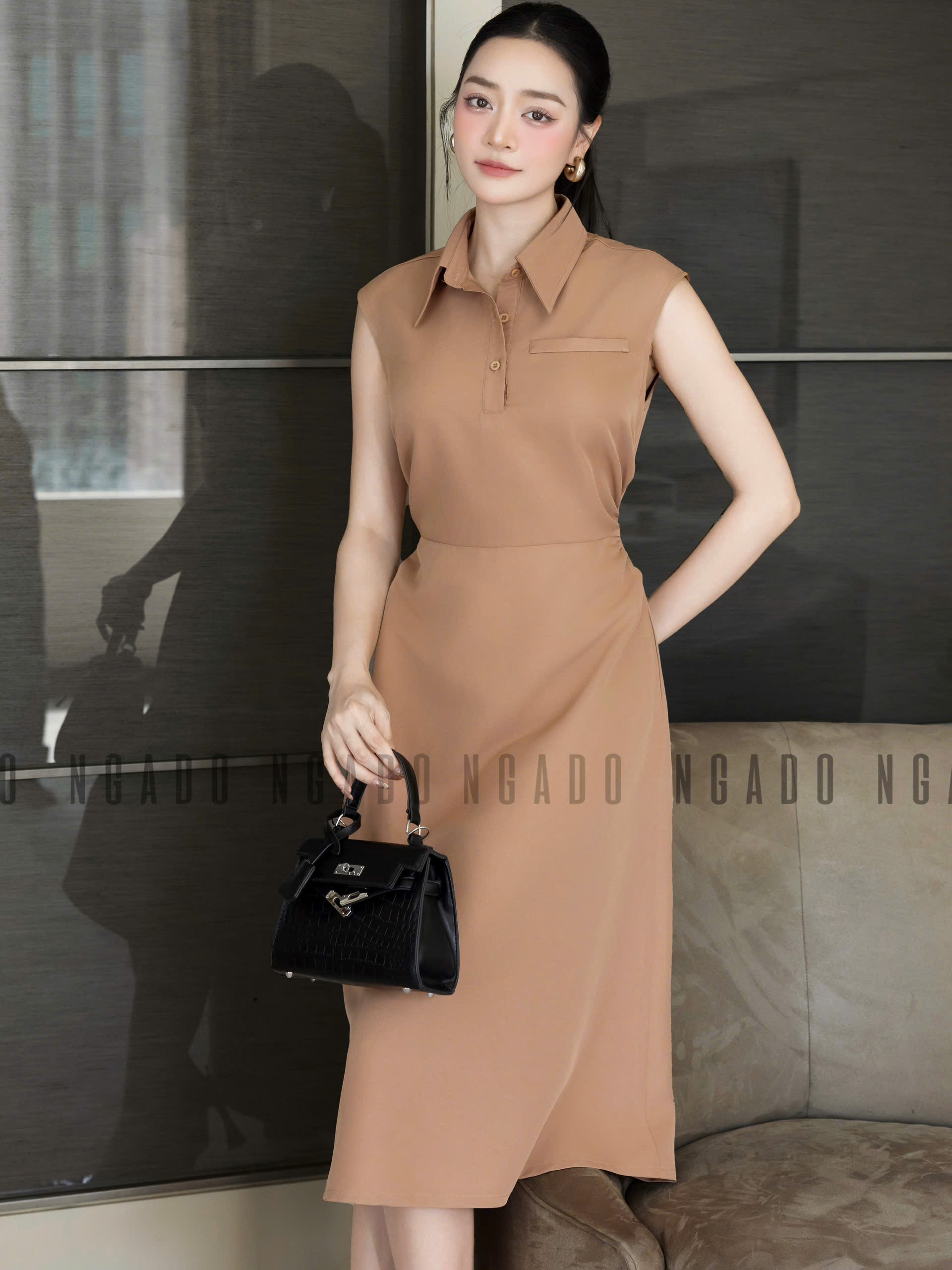 ✨Đầm nâu cổ sơ mi NGADO , đầm công sở , đầm dự tiệc