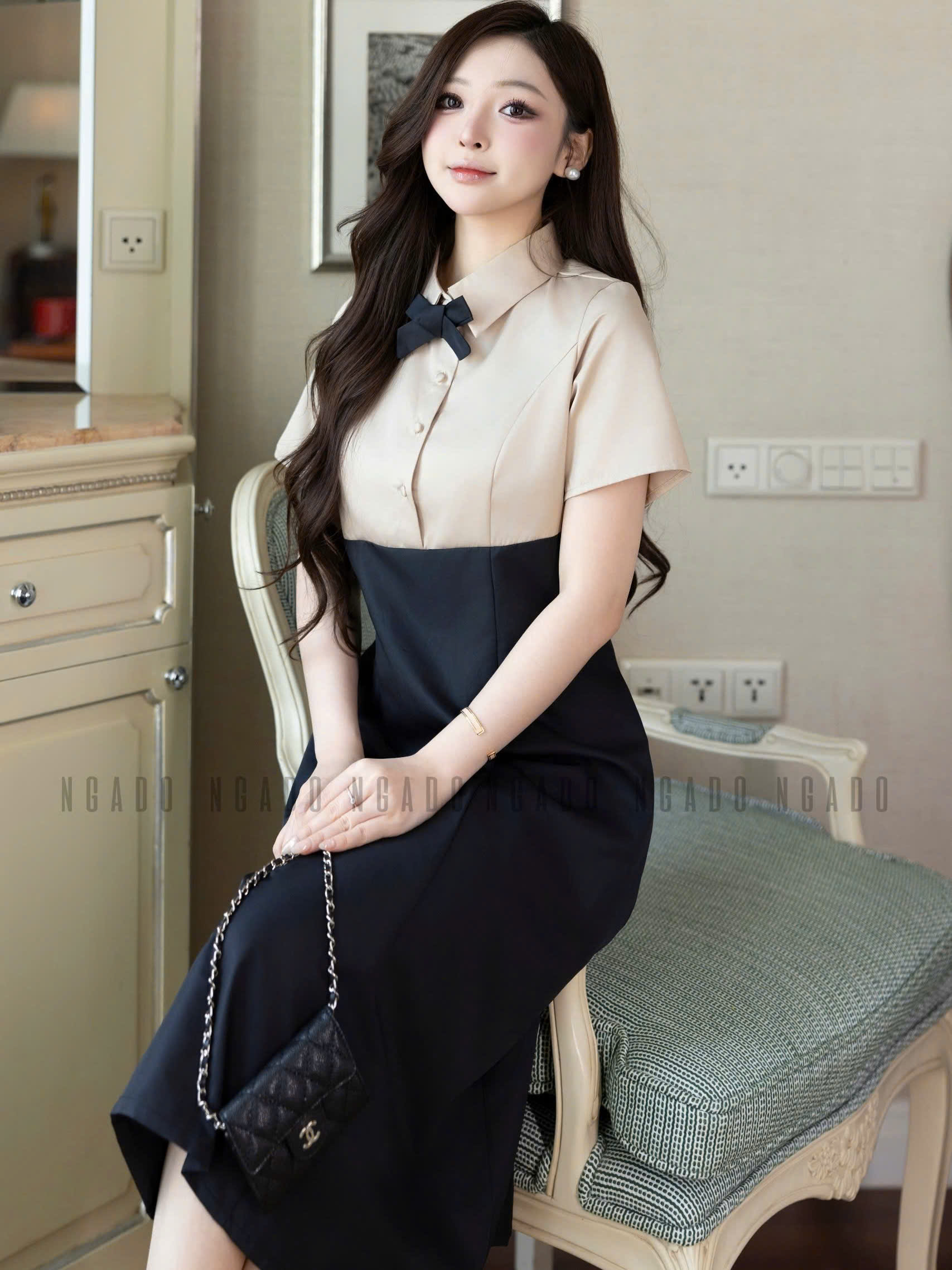Đầm eo cao giả set áo sơ vin với chân váy, kiểu tôn eo, chất liệu xuất sắc Mã: DZEA001 Màu: Hồng + Đen Chất liệu: Polyester Số đo vòng1/vòng2(cm): 89-giãn nhẹ/72-giãn nhẹ