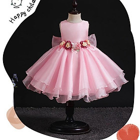 ✨Đầm voan công chúa cho bé gái màu hồng trắng đính hoa nổi mặc tết noel dự tiệc cưới hàng Quảng Châu cao cấp