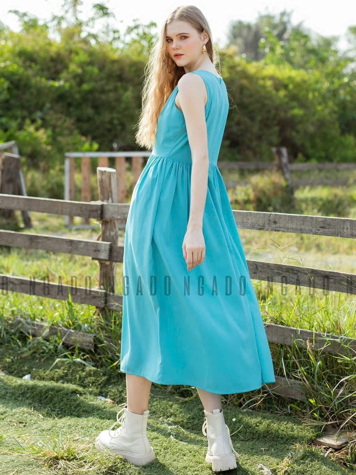 ✨Đầm xanh babydoll sát nách NGADO , đầm nữ , đầm thời trang , váy đi biển