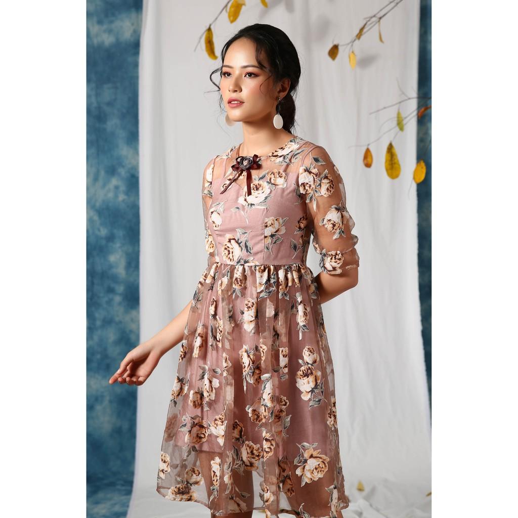 V2364. Mẫu đầm xòe hoa dự tiệc phong cách tiểu thư | Đầm đi tiệc cao cấp