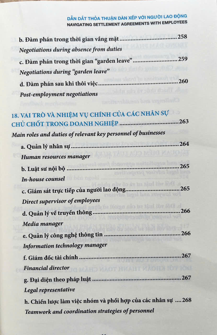 Đây là cuốn sách thiết thực cho:  Chuyên viên Nhân sự - Người trực tiếp cân bằng lợi ích của doanh nghiệp và quan hệ lao động một cách hiệu quả.  Luật sư, Chuyên viên Pháp chế - Người đưa ra chiến lược dựa trên cơ sở pháp luật để tư vấn về lao động cho doanh nghiệp.  Quản lý doanh nghiệp - Người cần hiểu rõ bản chất, cơ sở pháp lý của thỏa thuận dàn xếp để đưa ra những quyết định hợp tình cho người lao động, hợp lý cho sự phát triển lâu dài của doanh nghiệp.  Những điểm chính trong sách mà người đọc không thể bỏ qua:  Tổng quan về các thỏa thuận dàn xếp lao động: giải thích khái niệm, mục đích và lợi ích cho cả người sử dụng lao động lẫn người lao động.    Các bước thực tiễn từ giai đoạn mời họp cho đến khi hoàn tất thỏa thuận.    Các yếu tố cần lưu ý về văn hóa, đạo đức, tâm lý trong quá trình đàm phán.    Mẫu điều khoản và các ví dụ tình huống điển hình để độc giả dễ dàng áp dụng vào thực tiễn.   Phân tích tác động tài chính và các phương pháp thiết lập ngân sách phù hợp cho doanh nghiệp.    Chia sẻ những lỗi thường gặp, các lời khuyên và gợi ý để thương lượng thành công