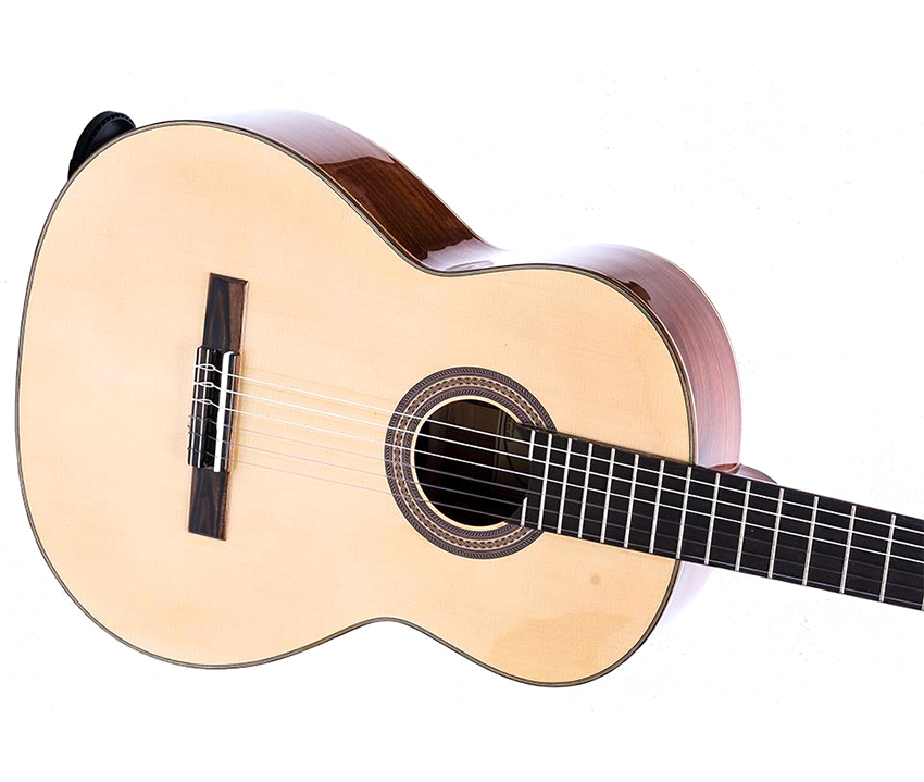 - Hoàn hảo như một cây đàn guitar dây nylon, cây đàn nhẹ này được chế tạo với một đầu đàn Engelmann chắc chắn và mặt sau bằng gỗ gụ để tạo ra một giai