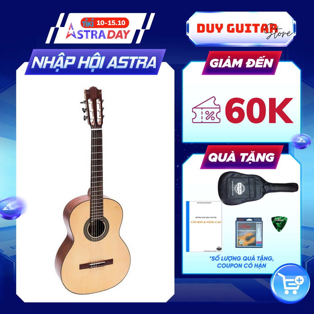 Shop Duy Guitar - đàn guitar classic chơi nhạc cổ điển Mã: DC120J Mặt: gỗ thông Eo + lưng: hồng đào chất lượng cao Cần: gỗ thao lao, có ty chống cong cần Mặt phím: