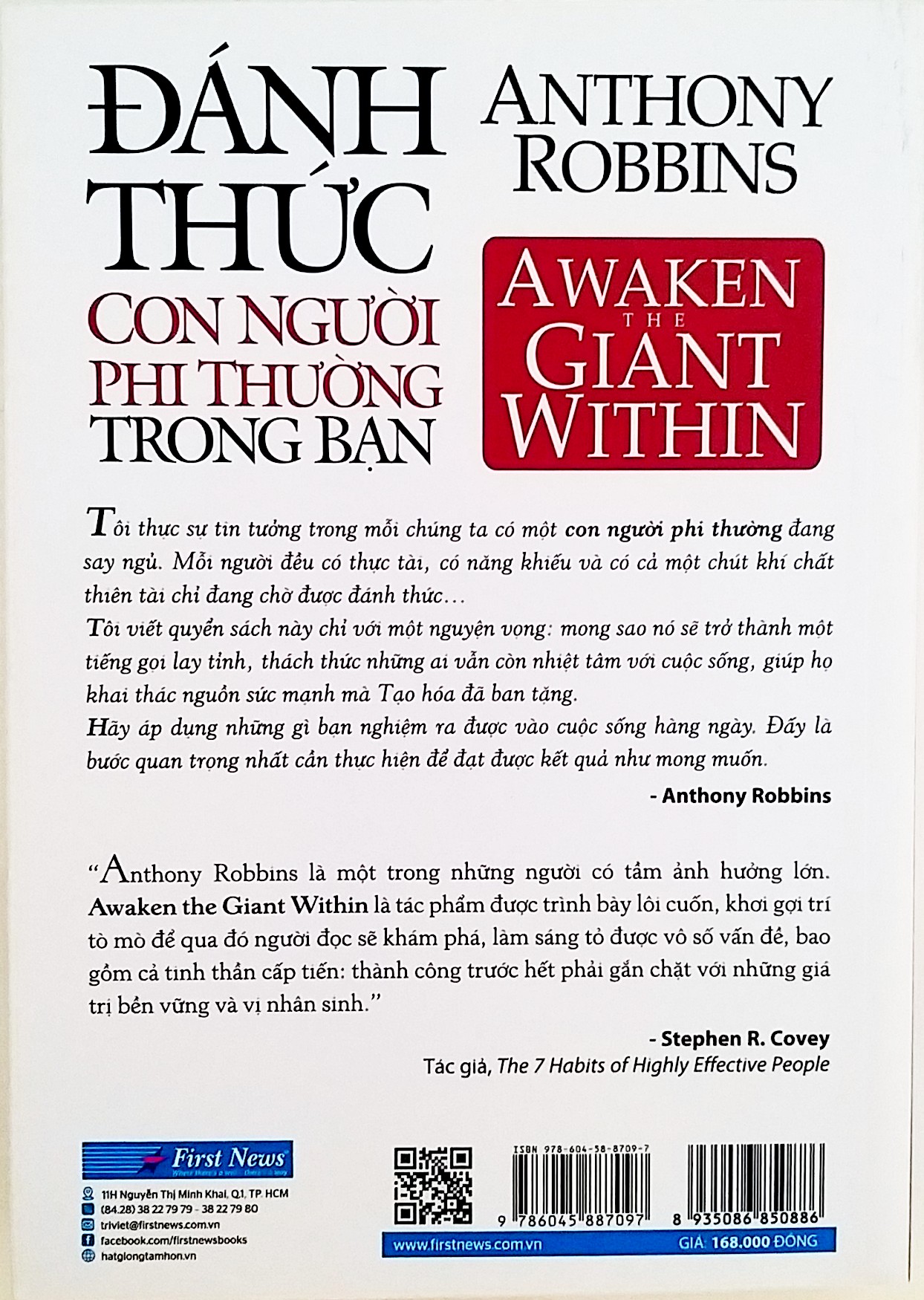 Qua cuốn “Đánh thức con người phi thường trong bạn”,, người đọc có thể phát hiện ra những lý do khiến mình tiếp tục hành động theo thói cũ và tác nhân gây ra những cảm xúc mà bạn thường gặp nhất. Đồng thời, tìm thấy một lộ trình để từng bước xác định cảm xúc nào củng cố thêm sức mạnh, cảm xúc nào triệt tiêu động lực tinh thần. Khi đó, xúc cảm không còn là chướng ngại, mà thay vào đó trở thành công cụ đắc lực hỗ trợ người đọc phát huy tối đa tiềm năng của mình. Làm được điều này, tất nhiên, “gã khổng lồ” trong mỗi con người nhất định sẽ được đánh thức.