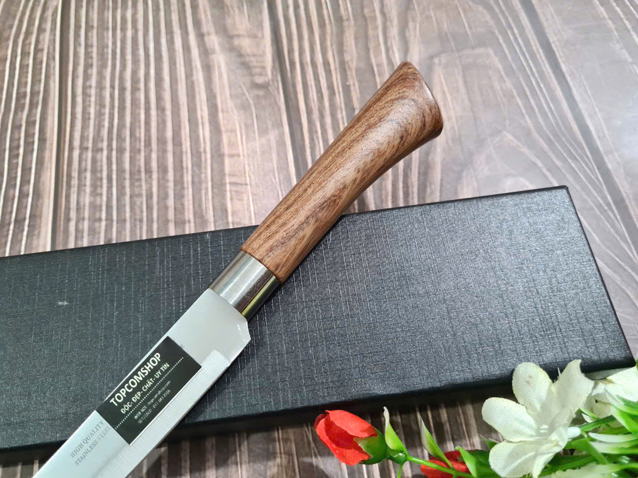 Cán dao làm từ gỗ c ẩmlai sang trọng, tay cầm cong