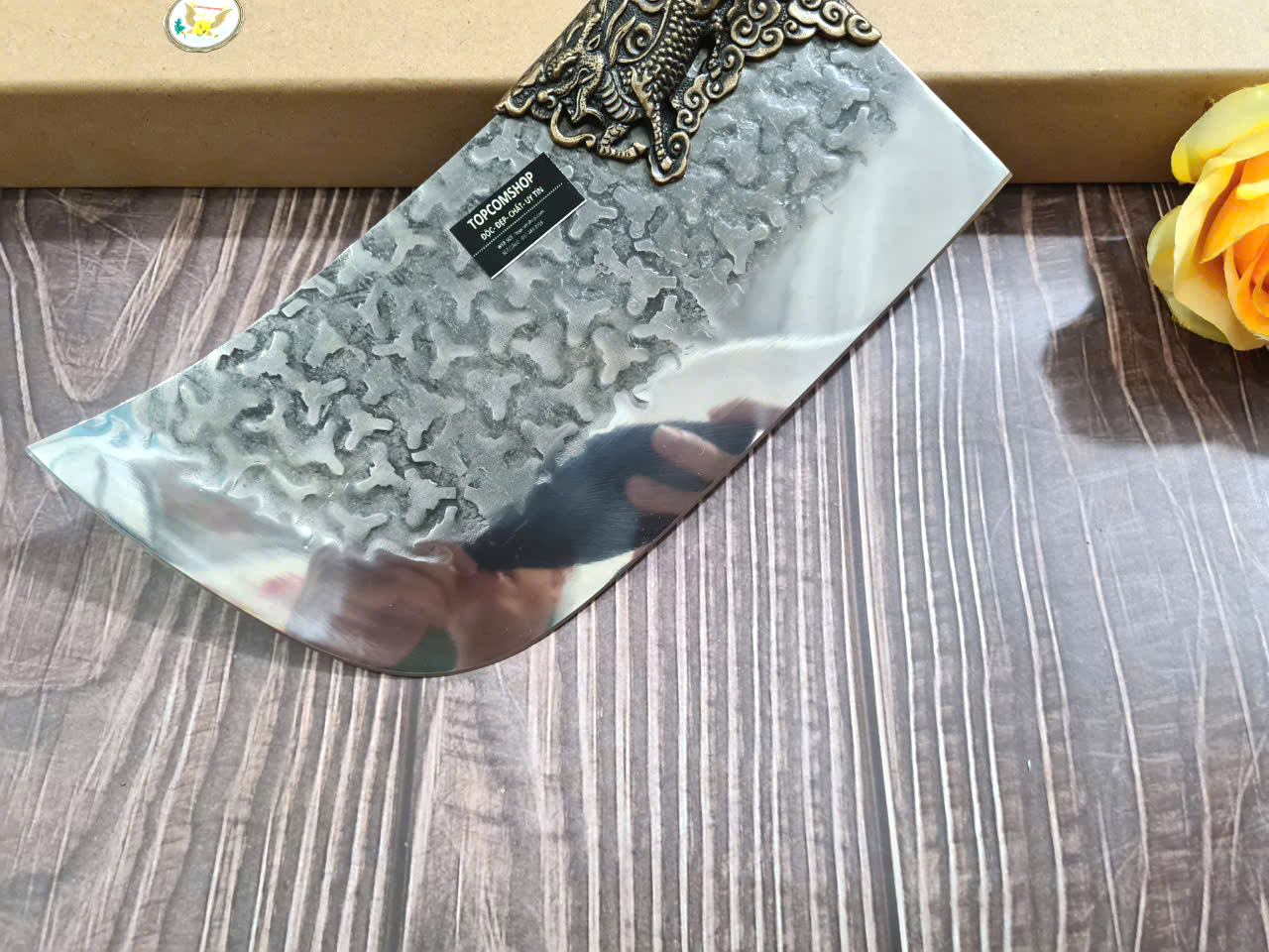 Tên sản phẩm: Dao Phúc Sen Dao Thái Kiểu 03 - Chức năng: chuyên thái thịt, rau củ - Chất liệu: 100% thép nhíp ô tô được lựa chọn và kiểm duyệt kỹ càng. -