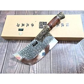 Chất liệu tay cầm: gỗ CẨM LAI, khâu và chuôi cuối dao bằng đồng thau