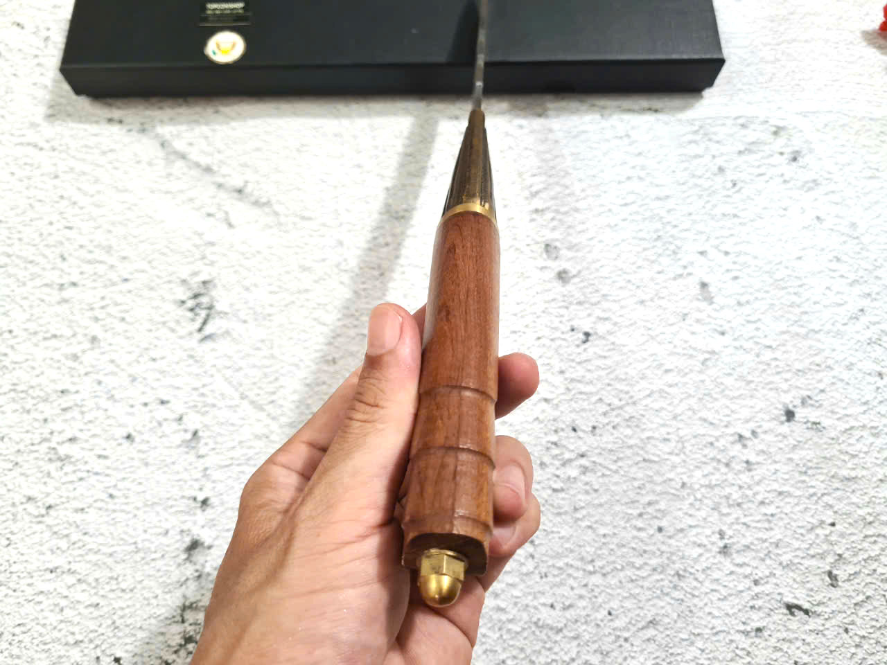 DAO BẾP SASHIMI MẶT HOA VĂN MÃ N4 THÔNG TIN SẢN PHẨM TỔNG DÀI : 45cm, LƯỠI: 30cm,RỘNG : 4cm, dày: 2.5mm, CHẤT liệu lưỡi: thép IFA cao cấp Chất liệu CÁN: gỗ Cẩm chỉ,
