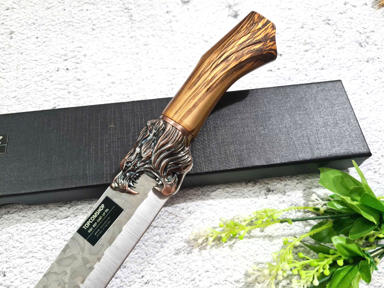 • Chất liệu: Thép Nhật 420J2, độ cứng 53HRC – siêu bền, chống gỉ • Lưỡi dao: Dày 2.5mm, sắc bén, hoàn thiện bằng đá mài nước • Tay cầm: Gỗ Pakka sang trọng, chống