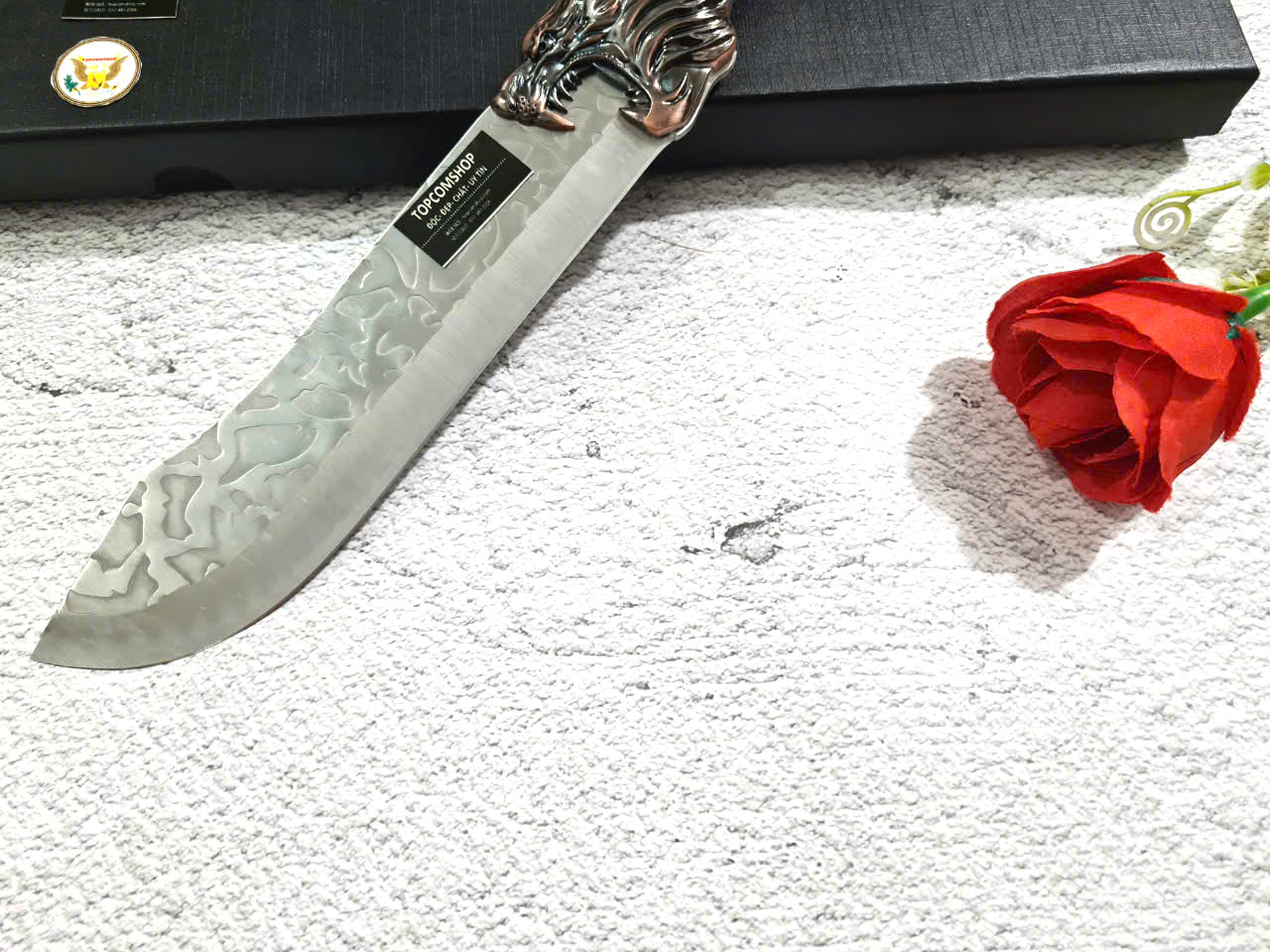 D SỐ 4 : TỔNG DÀI : 32cm, LƯỠI: 18cm,RỘNG : 4.5cm, dày: 3mm, NẶNG : 2.3 lạng, CHẤT liệu lưỡi: 4Cr13MOV (thép 4 crom 13 molypden vanadi).Chất liệu CÁN: nhựa abs xịn . khâu đầu rồng và chuôi bằng thép 4cr13