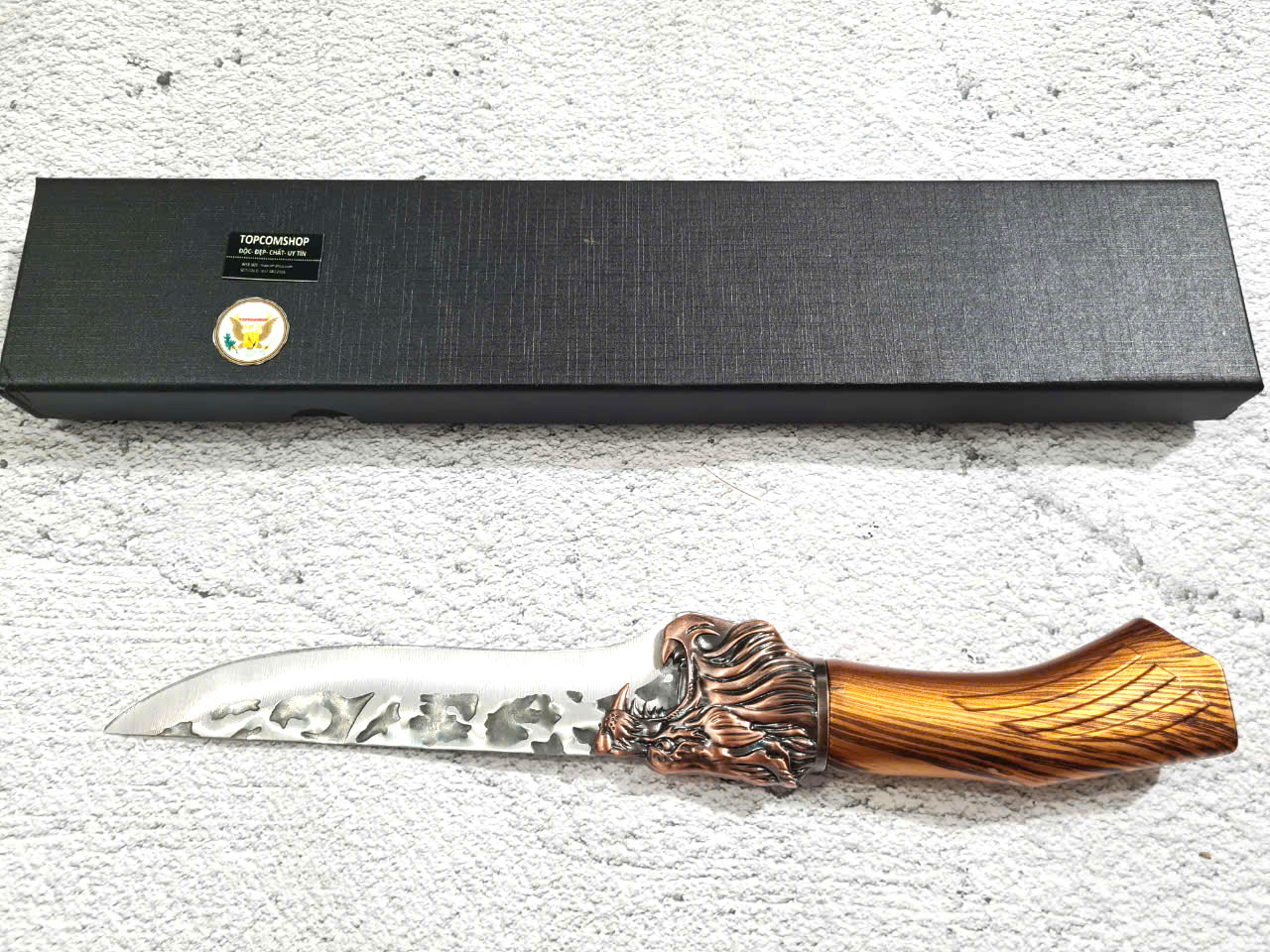 D SỐ 1 : TỔNG DÀI : 29cm, LƯỠI: 14cm,RỘNG : 4.5cm, dày: 3mm, NẶNG : 1.5 lạng, CHẤT liệu lưỡi: 4Cr13MOV (thép 4 crom 13 molypden vanadi).Chất liệu CÁN: nhựa abs xịn . khâu đầu rồng và chuôi bằng thép 4cr13