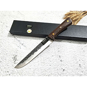 • Chất liệu: Thép Nhật 420J2, độ cứng 53HRC – siêu bền, chống gỉ • Lưỡi dao: Dày 2.5mm, sắc bén, hoàn thiện bằng đá mài nước • Tay cầm: Gỗ Pakka sang trọng, chống