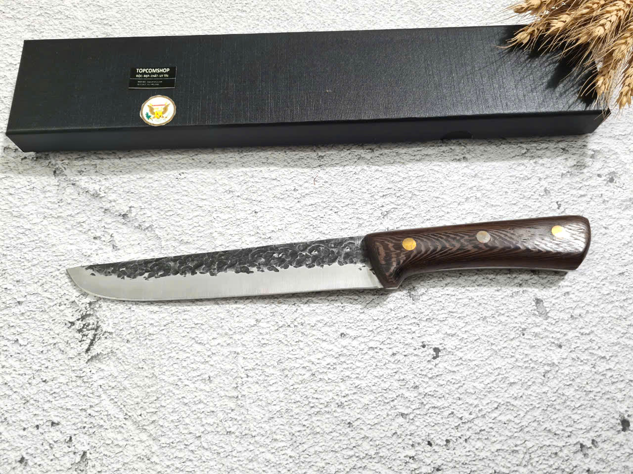 D SỐ 2 : TỔNG DÀI : 30cm, LƯỠI: 17.5cm,RỘNG : 2.9cm, dày: 2.5mm, CHẤT liệu lưỡi: 5Cr15MOV (thép 5 crom 15 molypden vanadi).Chất liệu CÁN: gỗ Cánh gà,.NẶNG : 2 lạng