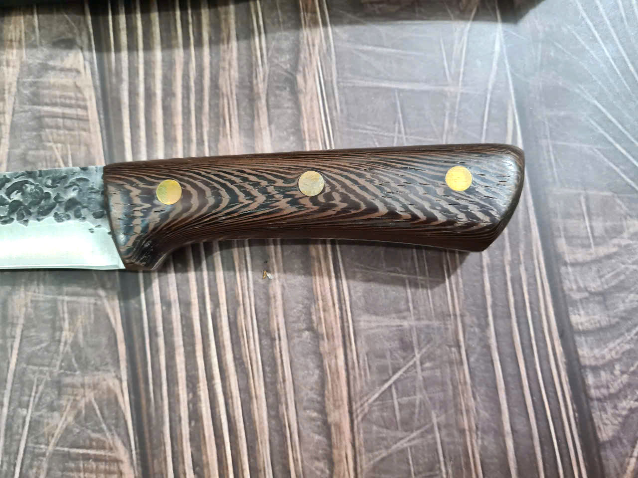 • Chất liệu: Thép Nhật 420J2, độ cứng 53HRC – siêu bền, chống gỉ • Lưỡi dao: Dày 2.5mm, sắc bén, hoàn thiện bằng đá mài nước • Tay cầm: Gỗ Pakka sang trọng, chống