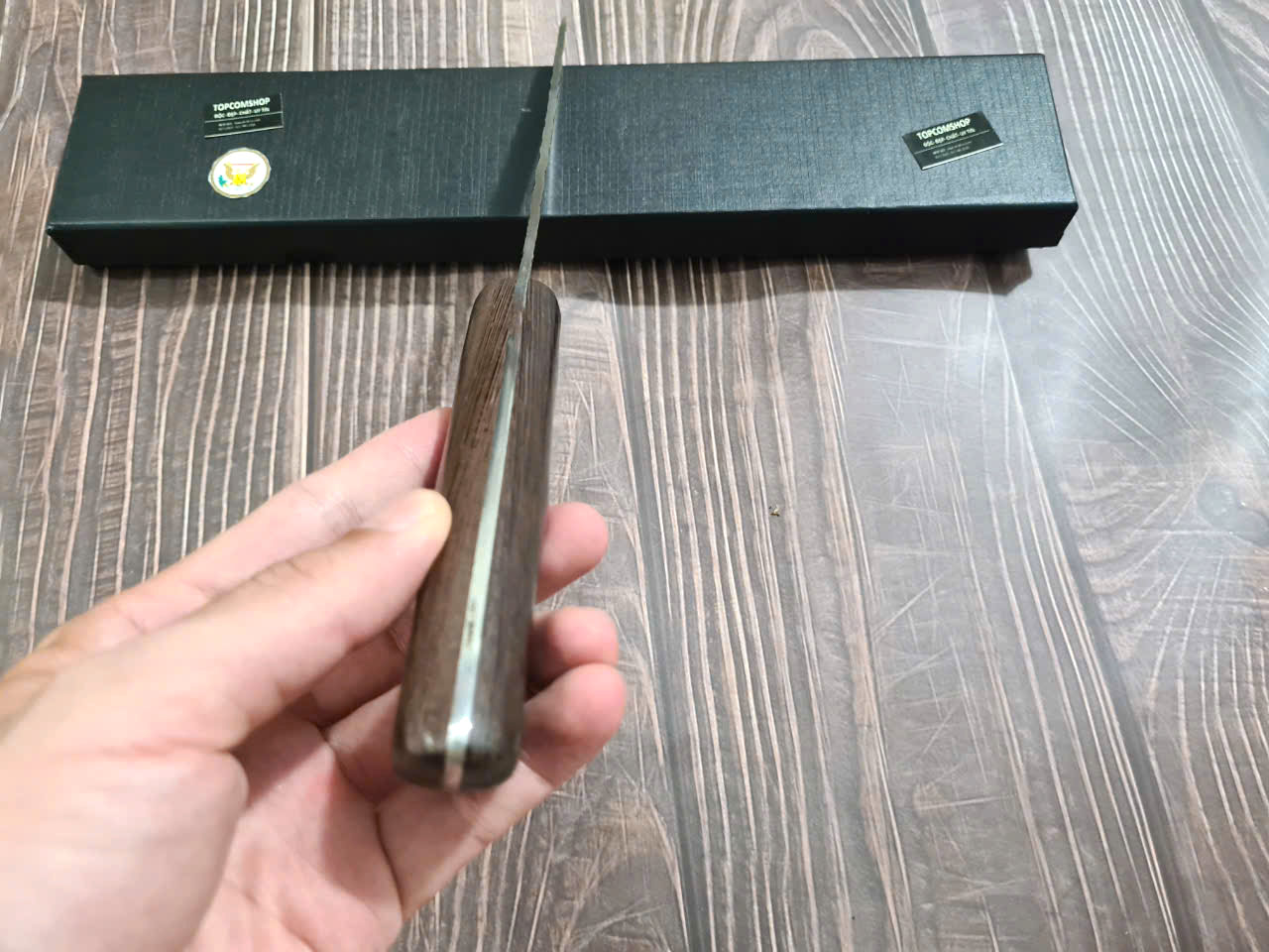 D SỐ 2 : TỔNG DÀI : 30cm, LƯỠI: 17.5cm,RỘNG : 2.9cm, dày: 2.5mm, CHẤT liệu lưỡi: 5Cr15MOV (thép 5 crom 15 molypden vanadi).Chất liệu CÁN: gỗ Cánh gà,.NẶNG : 2 lạng