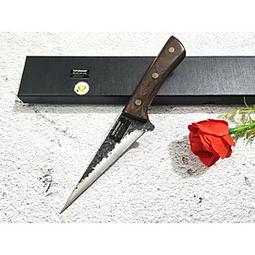 • Chất liệu: Thép Nhật 420J2, độ cứng 53HRC – siêu bền, chống gỉ • Lưỡi dao: Dày 2.5mm, sắc bén, hoàn thiện bằng đá mài nước • Tay cầm: Gỗ Pakka sang trọng, chống
