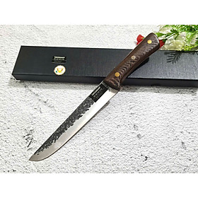 • Chất liệu: Thép Nhật 420J2, độ cứng 53HRC – siêu bền, chống gỉ • Lưỡi dao: Dày 2.5mm, sắc bén, hoàn thiện bằng đá mài nước • Tay cầm: Gỗ Pakka sang trọng, chống