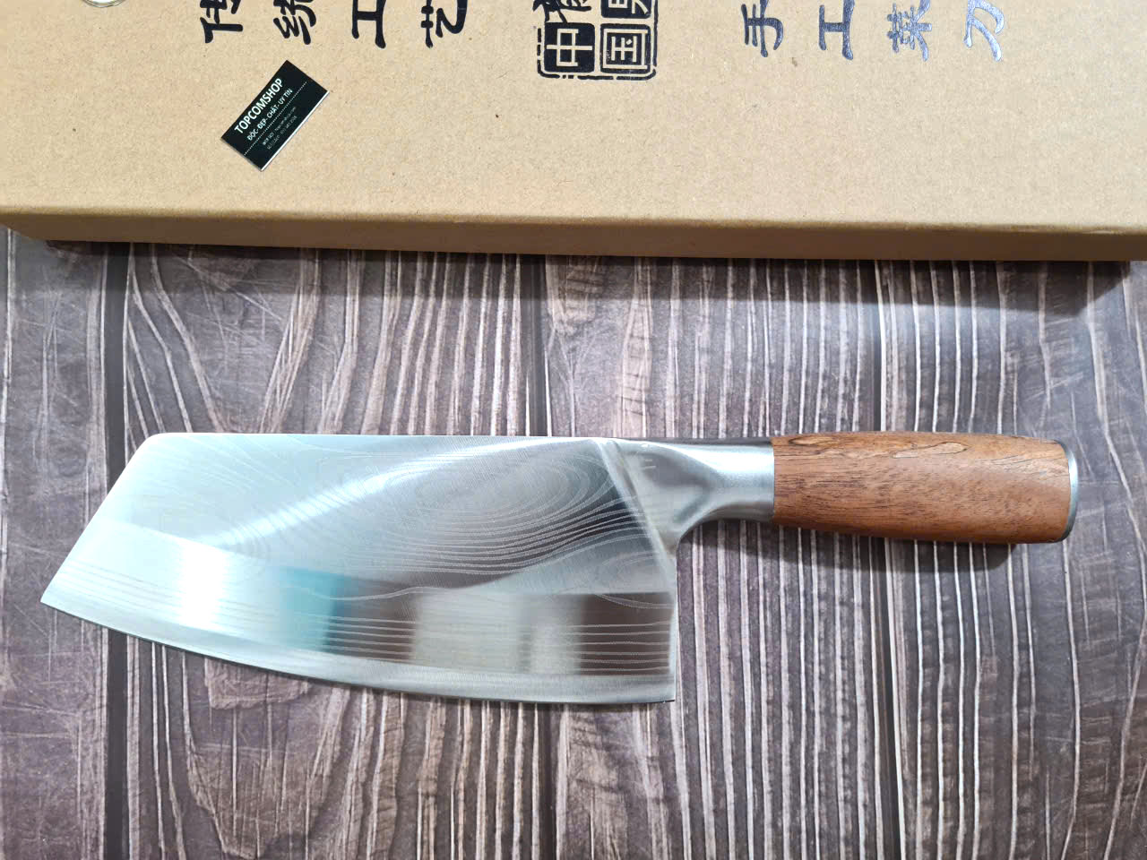 - Chức năng: chuyên chặt thái cá, chặt gà, lọ - Kích thước: Lưỡi: 26cm, cán: 12,5cm, rộng: 6,5cm, dầy: 4ly, trọng lượng: 480g - Cán : Gỗ mun , Khâu và chốt đồng đỏ