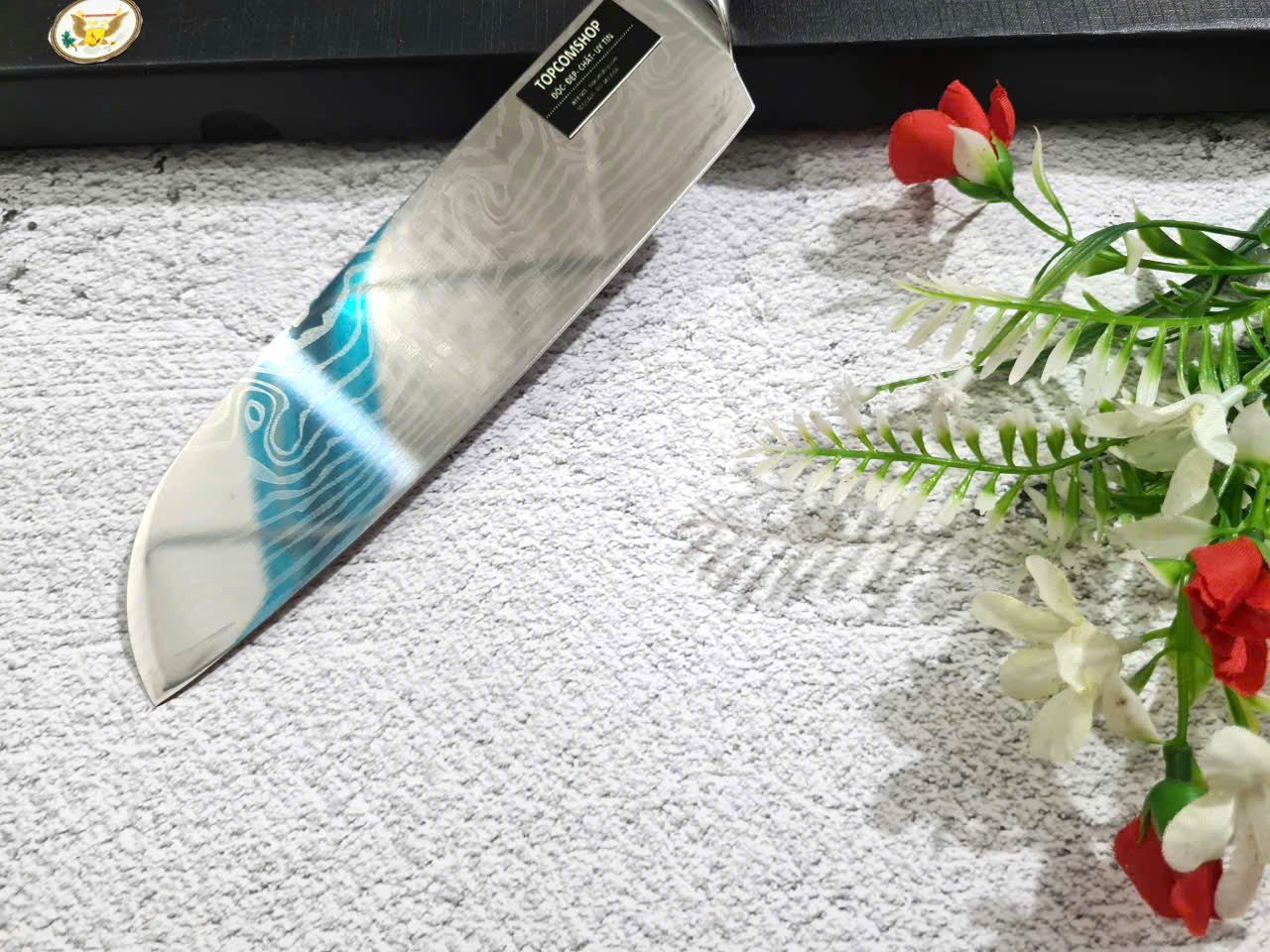Santuku damascus đôồng vàng và đỏ niken . 18cm . 0903.951.958