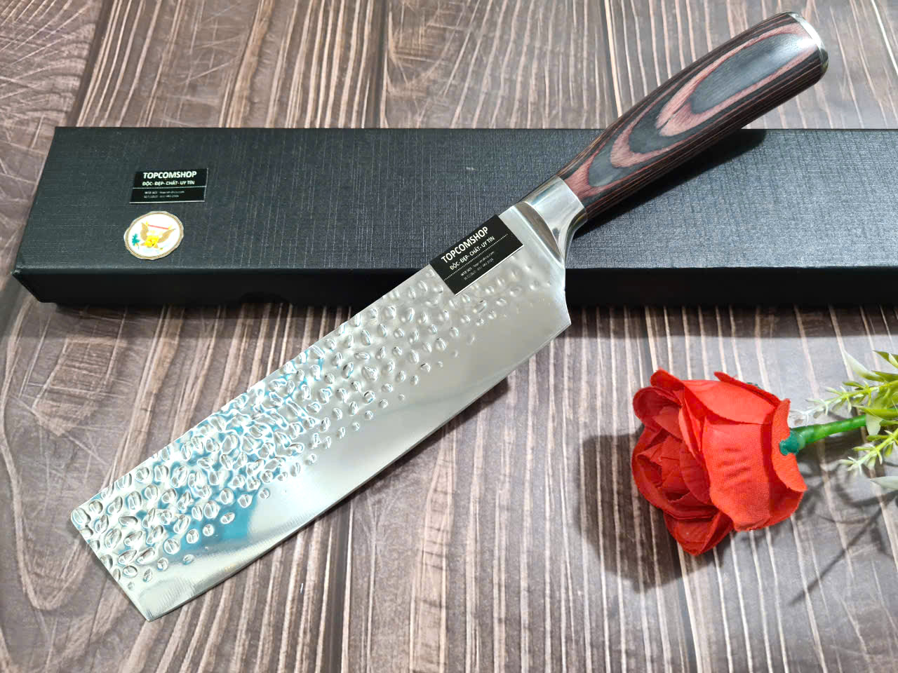 Tên sản phẩm: Dao Phúc Sen, Dao Thái Kiểu 03 Cán Gỗ Cẩm - Chức năng: chuyên thái thịt, rau củ - Chất liệu: 100% thép nhíp ô tô được lựa chọn và kiểm duyệt
