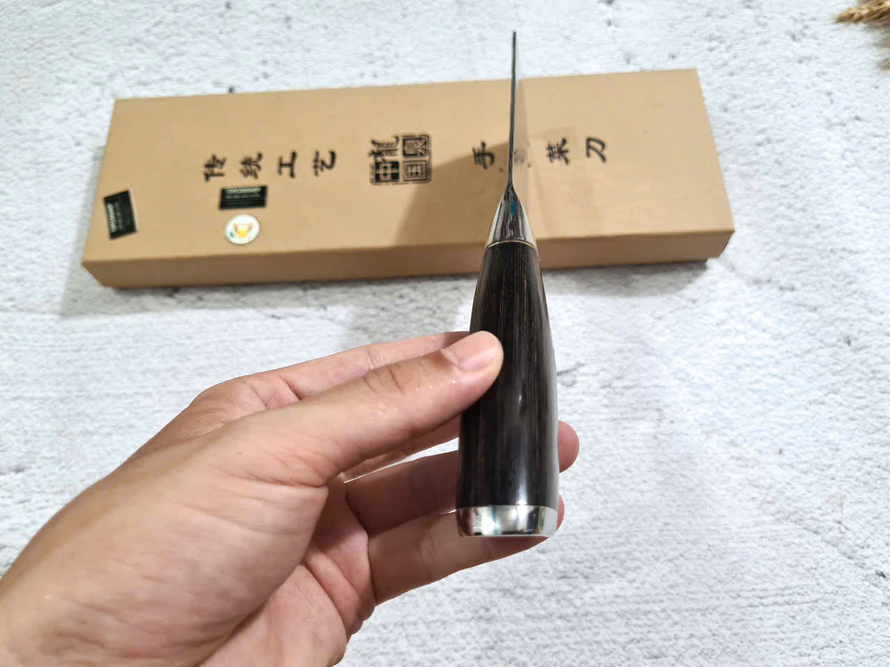 - Cán được làm bằng gỗ Pakka có vẻ ngoài thanh lịch, Lưỡi Được làm từ chất liệu thép 7Cr17 cao cấp giúp D có độ sắc rất lâu, rất ýt khi phải mài.