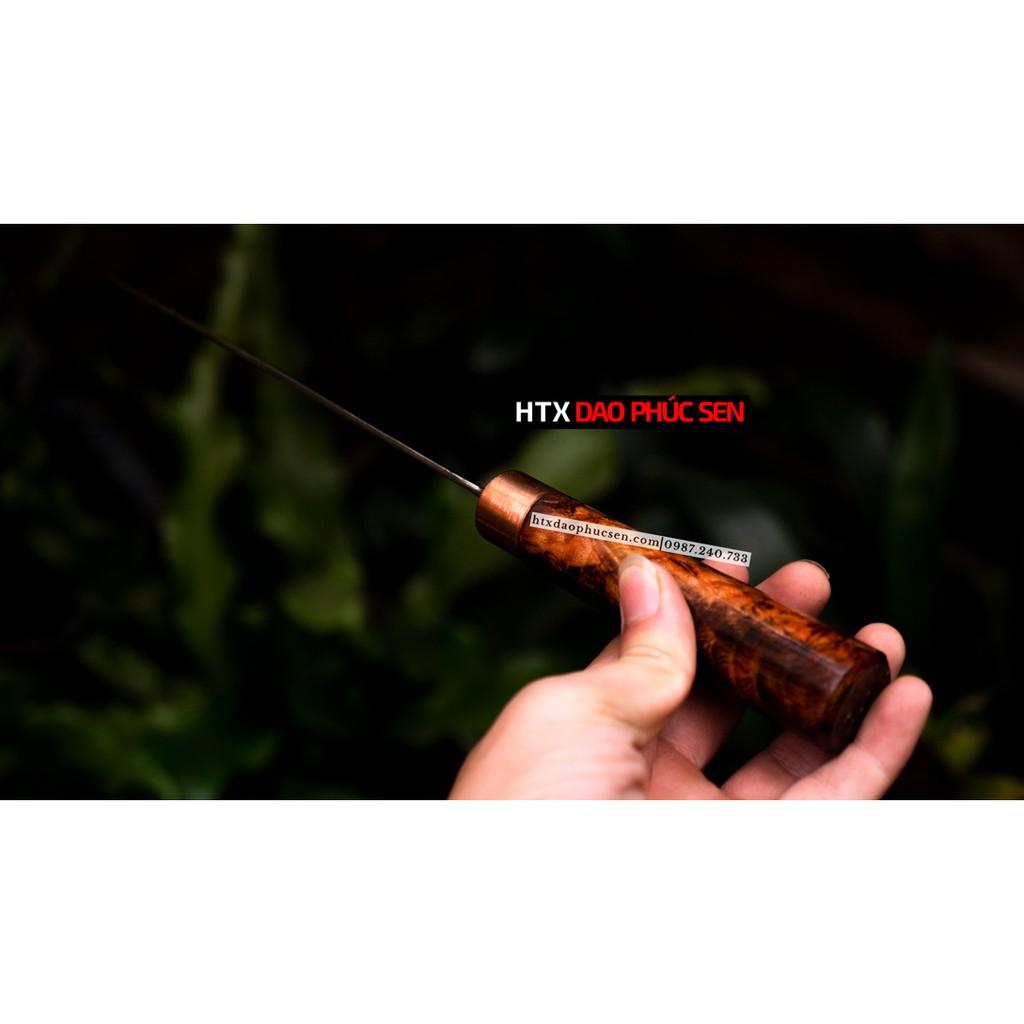 Dao Phúc Sen Dao Bầu 22 Cán Cẩm Khâu Đồng G10D - Kích thước: lưỡi: 20-22cm, cán: 13cm, rộng: 7,5cm, dầy: 1,5ly, trọng lượng: 300g - Chức năng: sử dụng chuyên thái lọc thịt ,cá,