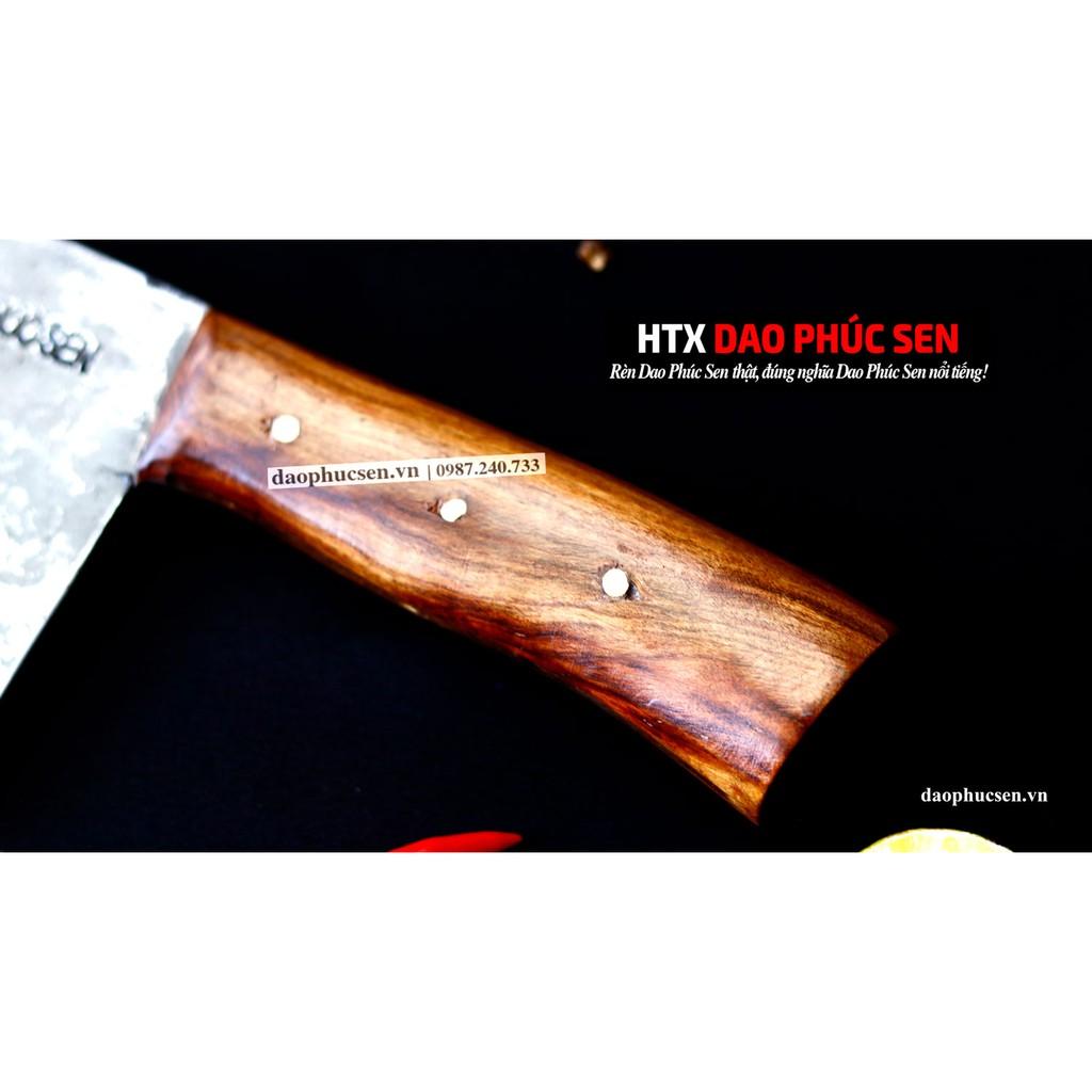 Dao Phúc Sen - Dao chặt xương 5ly - Chất liệu: 100% thép nhíp ô tô được lựa chọn và kiểm duyệt kỹ càng. - Chất liệu cán: gỗ cẩm chỉ núi - Kích thước: