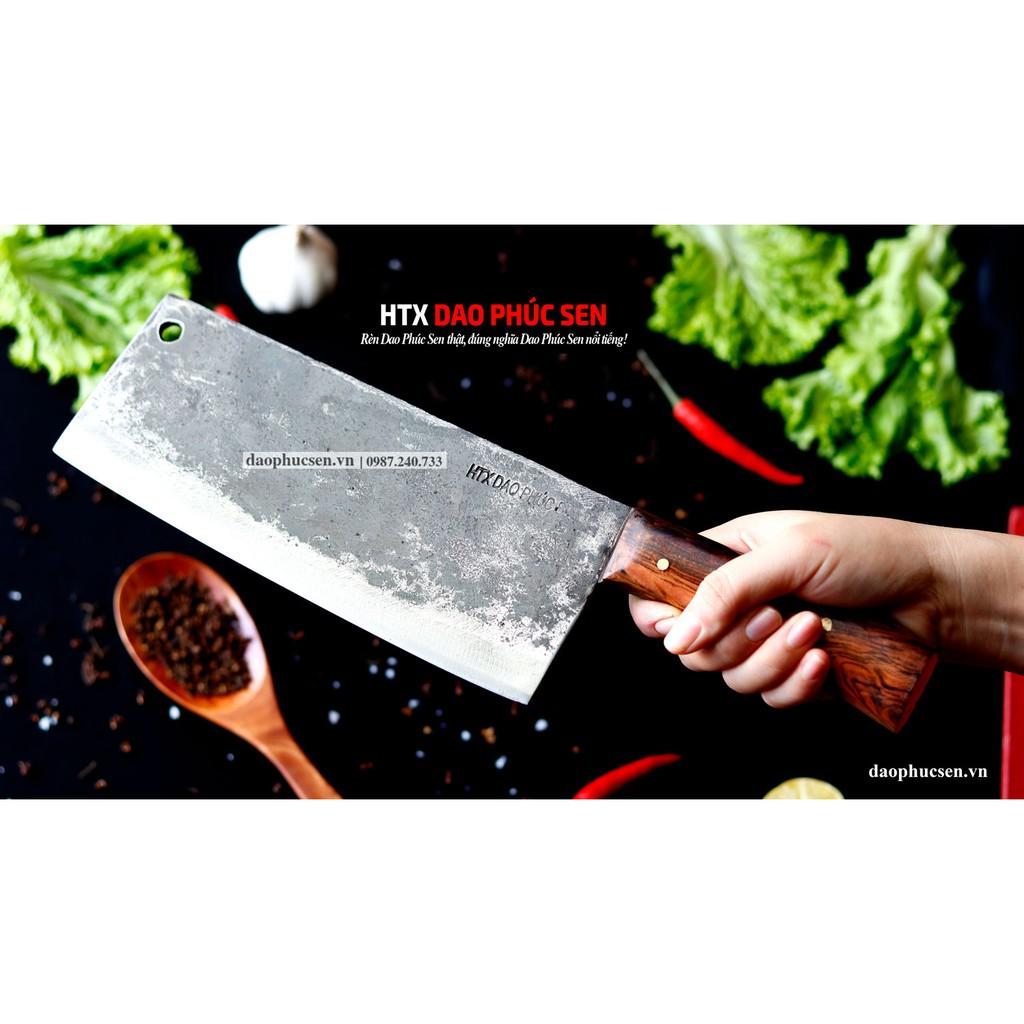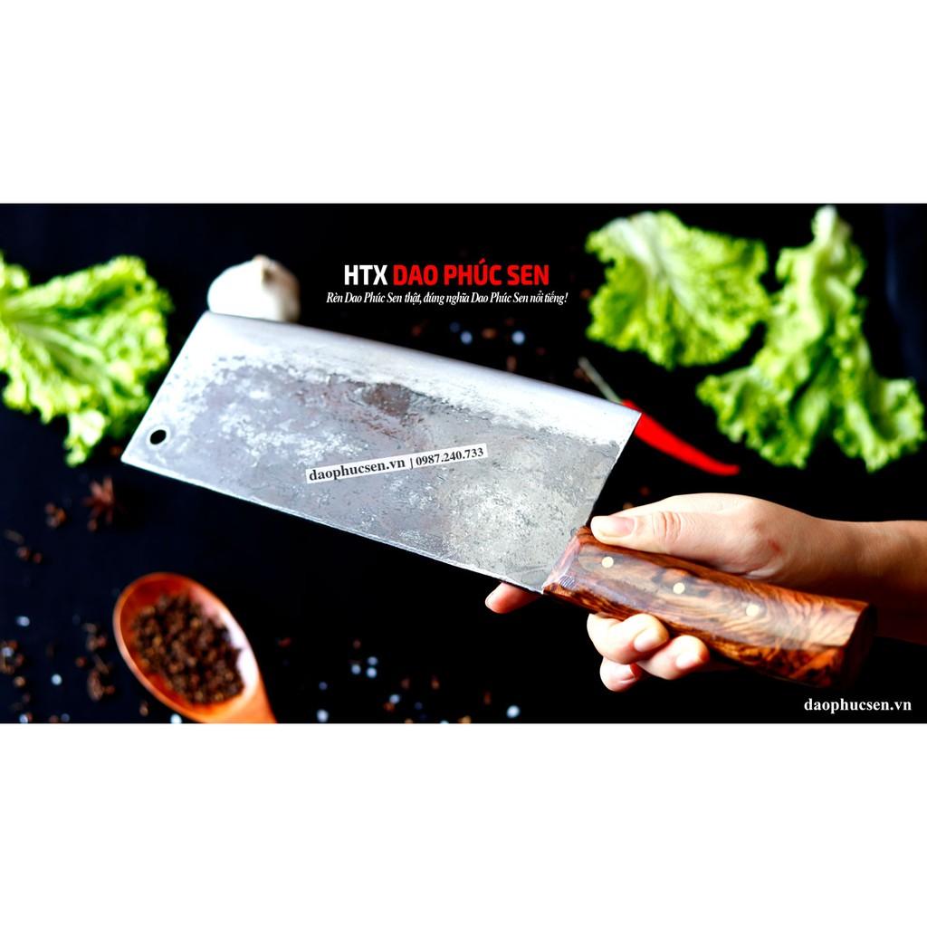 Dao Phúc Sen - Dao chặt xương 5ly - Chất liệu: 100% thép nhíp ô tô được lựa chọn và kiểm duyệt kỹ càng. - Chất liệu cán: gỗ cẩm chỉ núi - Kích thước: