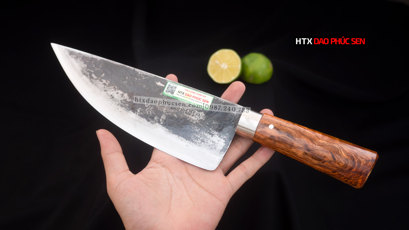 Tên sản phẩm: Dao Phúc Sen, Dao Thái Kiểu 03 Cán Gỗ Cẩm - Chức năng: chuyên thái thịt, rau củ - Chất liệu: 100% thép nhíp ô tô được lựa chọn và kiểm duyệt