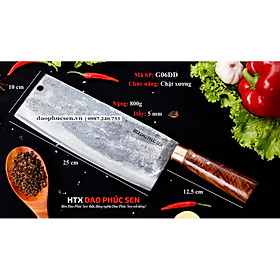 Dao Phúc Sen Chặt Xương cán Ốp cẩm ( G06OCD ) - Kích thước: lưỡi: 24cm, cán: 13cm, rộng: 10cm, dầy: 0,5, trọng lượng: 700g - 900g - Chức năng: sử dụng chuyên chặt xương