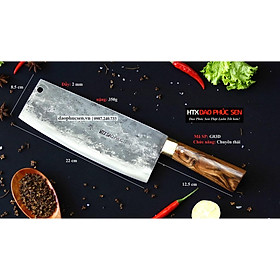 - Chức năng: thái thịt, rau củ quả - Kích thước: Lưỡi: 17cm, cán: 12cm, rộng: 5cm, dầy: 1ly, trọng lượng: 200g - Cán : Gỗ cẩm chỉ, Chốt, Khâu ĐỒNG THAU , keo liên