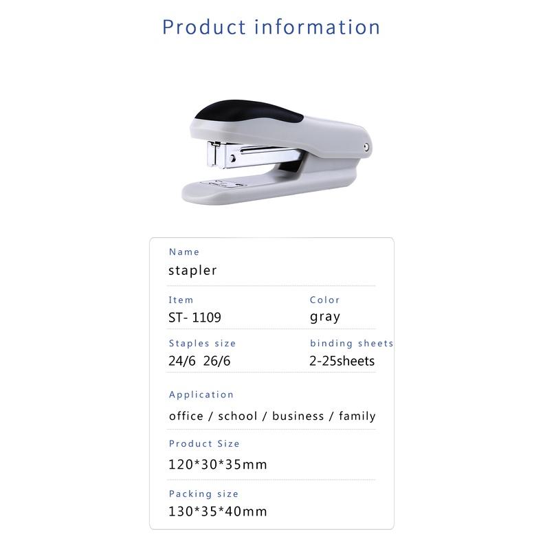 Vật chất::kim loại Kích thước:Bình thường Kích thước ghim:24/6, 24 / 6T, 26/6 Công suất ghim:80 chiếc Dung lượng tấm:25 Độ sâu cổ họng:80mm Kích thước:12 * 3 * 3.5 cm op kim bấm tiện