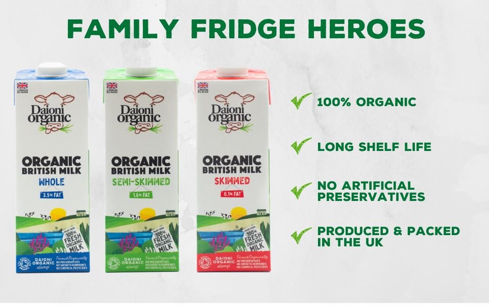Sữa Tươi Hữu Cơ Tách Béo Tiệt Trùng 0.1% Daioni 1Lit x 12 Hộp Xuất xứ: Anh. Date: 12 tháng kề tù ngày sản xuất - Sữa tươi hữu cơ nguyên kem được tiệt trùng
