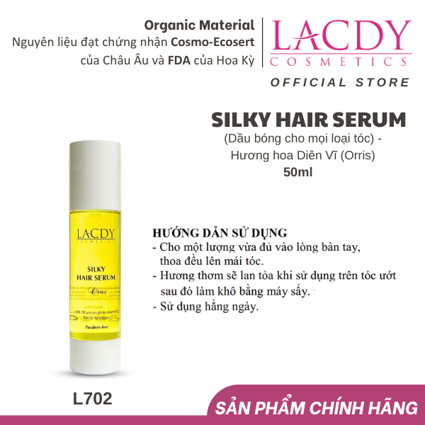 SILKY HAIR SERUM (Dầu bóng cho mọi loại tóc) - Hương hoa Diên Vĩ (Orris) Dầu bóng dành cho mọi loại tóc, đặc biệt cho tóc khô, gãy, rụng, chẻ ngọn. Với dầu olive, chiết