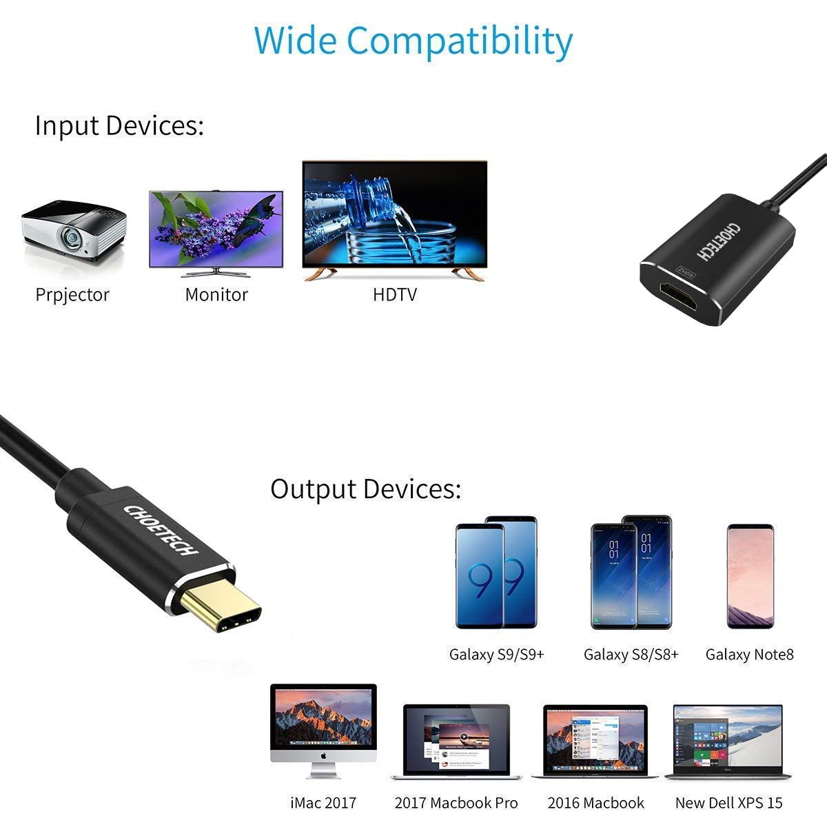 Đầu chuyển adapter USB 3.1 Type-C ra cổng HDMI chuẩn 4k / 60Hz hiệu CHOETECH HUB-H06 cho điện thoại cho Macbook / cho Laptop (Tốc độ truyền tải ổn định 10Gbps, thiết kế nhỏ gọn, Video chất lượng cao)         CÔNG NGHỆ CHUYỂN ĐỔI HDMI TIÊN TIẾN Mang trong mình công nghệ tiên tiến Type-C sang HDMI, chiếc hub này hỗ trợ bạn rất nhiều trong công việc, học tập và giài trí. Giúp bạn trình chiếu mọi thứ.       CHIP ĐIỀU KHIỂN THÔNG MINH Chip điều khiển được nâng cấp đáng kể, giúp kiểm soát một cách thông minh, giúp bạn có thể an tâm khi sử dụng, tất cả thiết bị của bạn sẽ an toàn khi kết nối với chiếc HUB này. Cho tốc độ truyền tải video cao, ổn định, chất lượng video cực tốt. Tốc độ truyền tải đến 10Gbps, tần số 60Hz         HỖ TRỢ KẾT NỐI HDMI CHUẨN 4K Kết nối vào cổng HDMI của hub, giúp bạn dễ dàng trình chiếu được các video chuẩn 4K, điều này sẽ hỗ trợ bạn tốt trong các cuộc họp hay các buổi báo cáo trình chiếu, ngoài ra xem phim cùng người thân cũng là một trải nghiệm tuyệt vời với video chuẩn 4K.     ĐỘ TƯƠNG THÍCH CAO Thiết bị phù hợp với mọi loại điện thoại hay máy tính bảng, cho Macbook, cho iPad Pro 11 inch 12.9 inch, sử dụng cổng Type-C và các màn hình TV có hỗ trợ chức năng HDMI.     THIẾT KẾ SANG TRỌNG Thiết kế với màu đen Classic, các chi tiết được gia công tỉ mỉ, chúng trông thật gọn nhẹ và sang trọng khi sử dụng, dễ dàng mang theo ở bất kỳ đâu. Đầu cáp làm từ hợp kim mạ màu vàng cực kỳ chắc chắn.