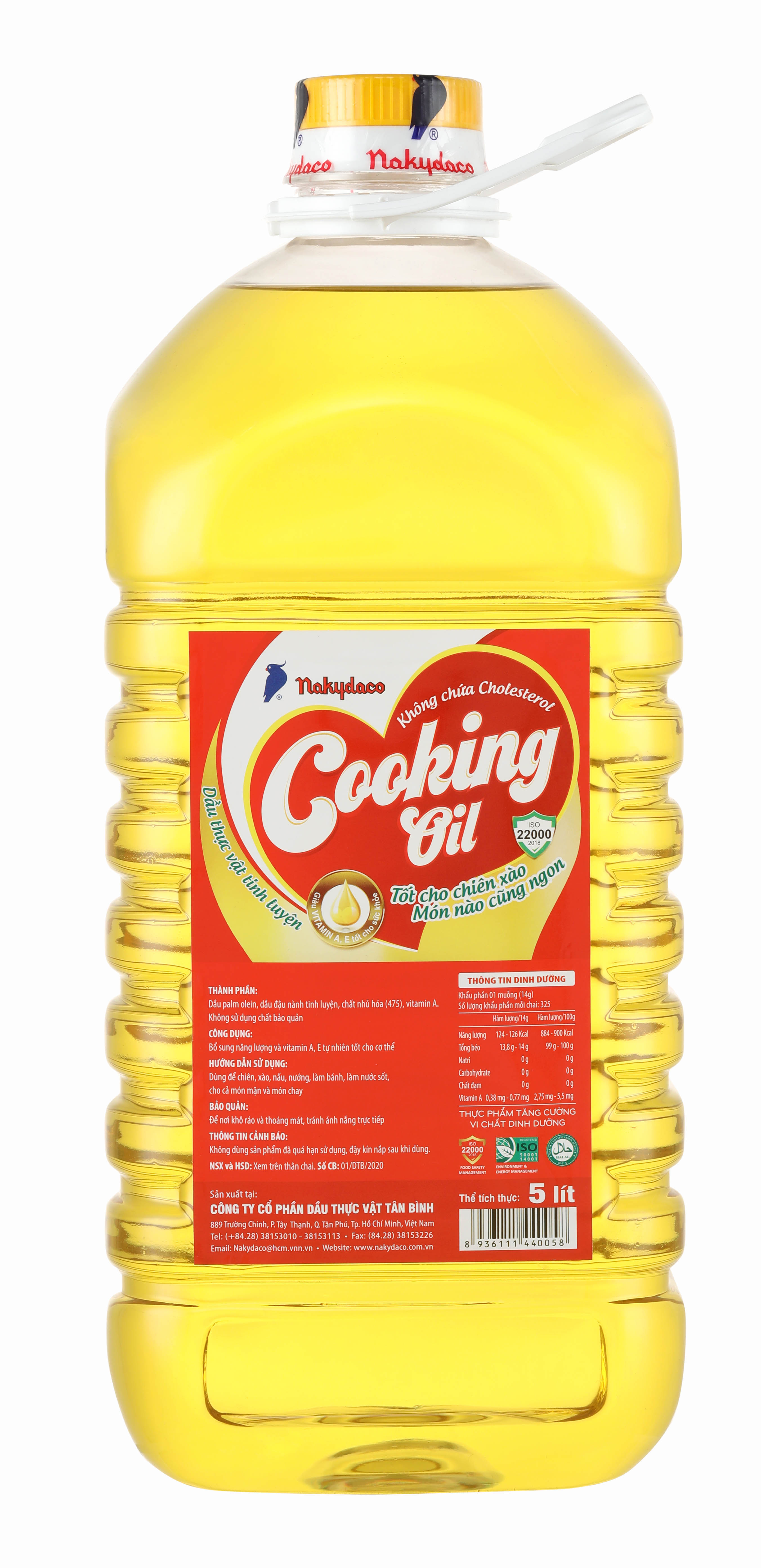 - DẦU ĂN COOKING OIL NAKYDACO : Là sản phẩm danh tiếng đến từ thương hiệu NAKYDACO, được sản xuất với dây chuyển công nghệ hiện nhất Việt Nam, tuân thủ các tiêu chuẩn quốc tế nghiêm ngặt về vệ sinh an toàn thực phẩm. Đảm bảo chất lượng, không chứa Cholesterol và không chất bảo quản.